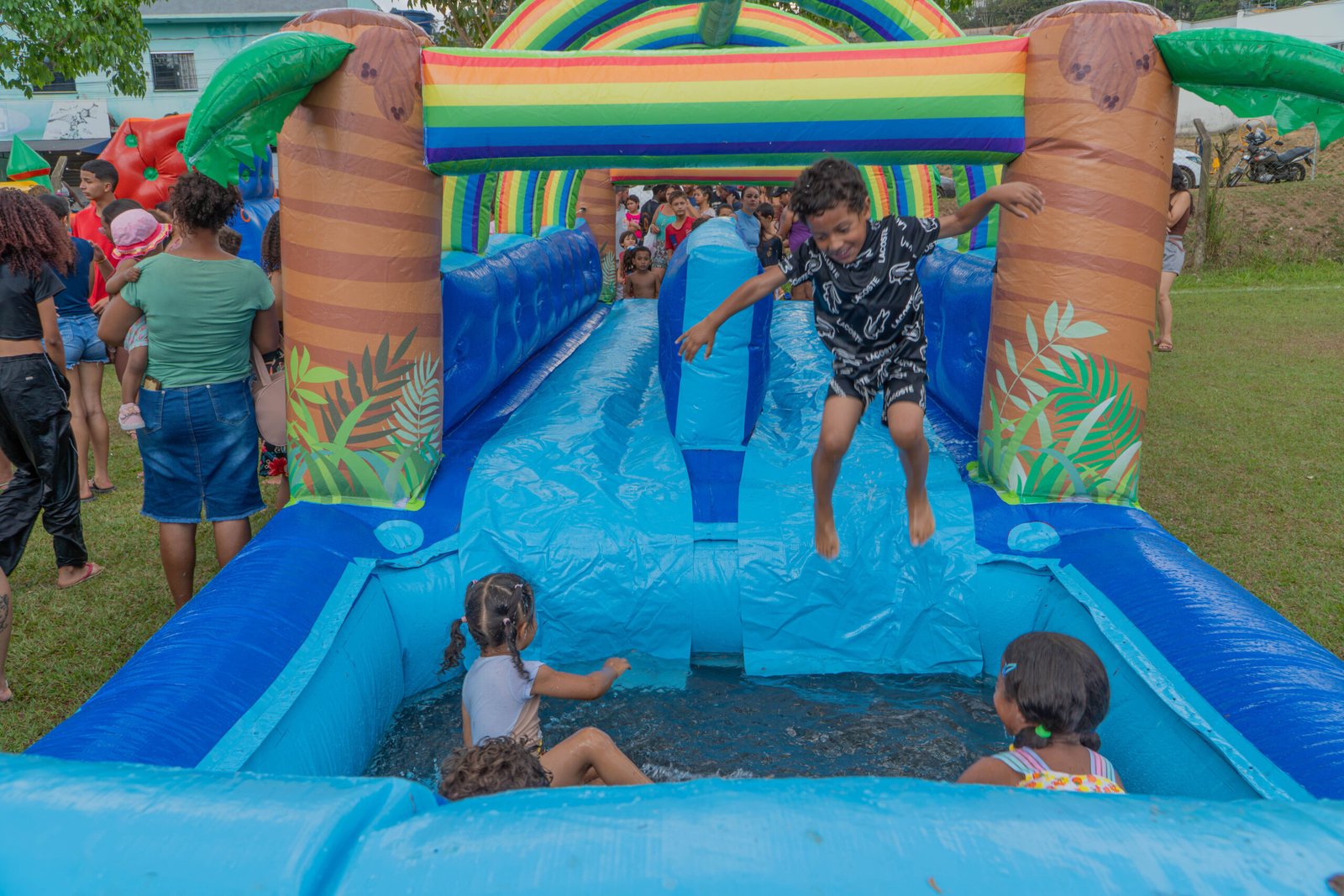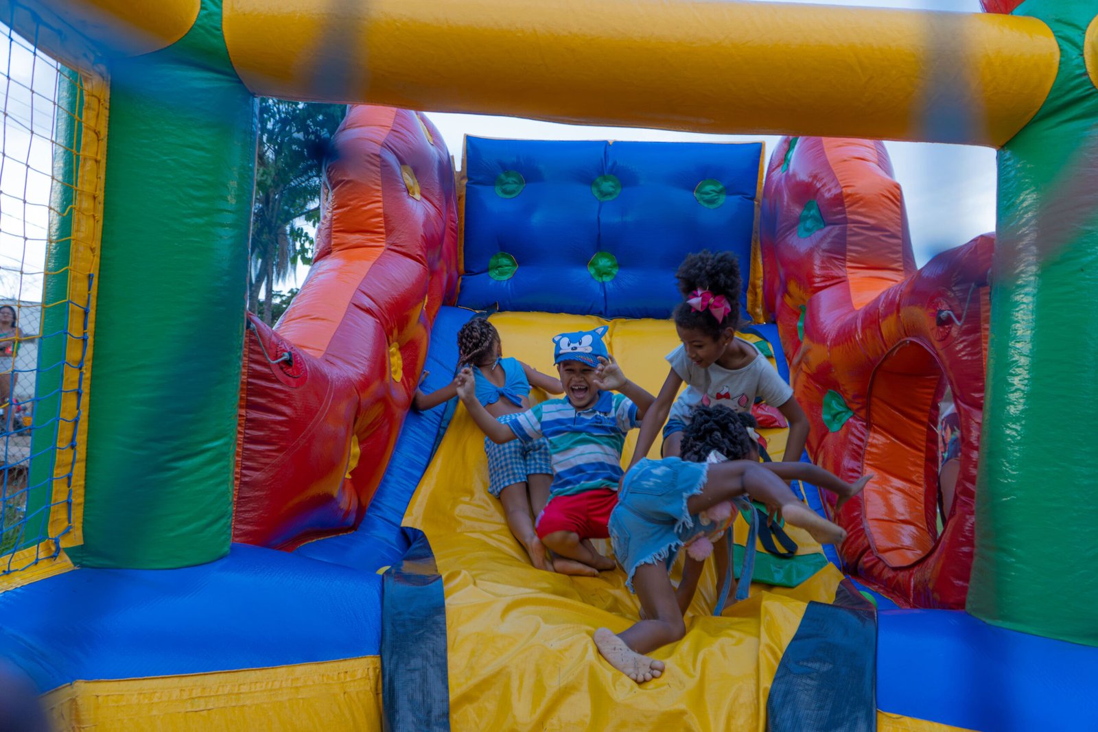 A programação foi recheada de muita diversão para as crianças, incluindo: pula-pula, tobogã inflável com piscina de bolinhas, futebol de sabão e splash slide.