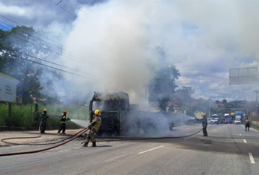 De acordo com informações do Corpo de Bombeiros Militar de Minas Gerais, as equipes foram acionadas para combater o fogo que atingiu a parte frontal do veículo. Após os trabalhos de combate, as chamas foram controladas, mas o cavalinho da carreta ficou completamente destruído.