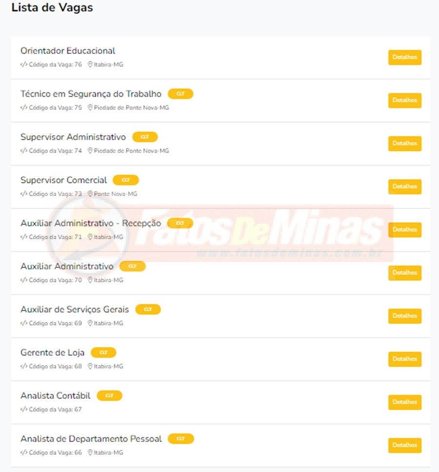 SINE ITABIRA Confira 124 vagas de emprego ofertadas pelo Sine Itabira nesta terça-feira, 2 dezembro