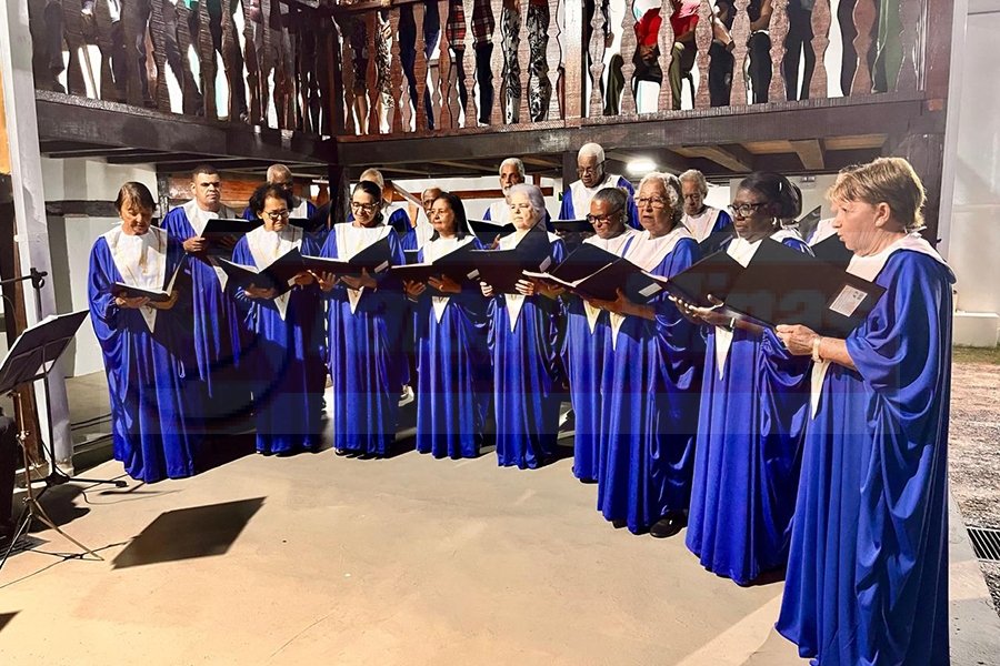 SÃO GONÇALO DO RIO ABAIXO (MG) – O Coral da Associação Bem Viver na Terceira Idade (Abeviti) realizou na noite de quinto dia 16 de maio de 2024, o primeiro Sarau da Casa das Artes. A apresentação ocorreu na área externa da Casa e reuniu um bom público que se espalhou pela sacada da varanda e janelas. O coral acompanhado de violão e flauta interpretou diversas canções entre elas, Aleluia e Jardim da Fantasia.