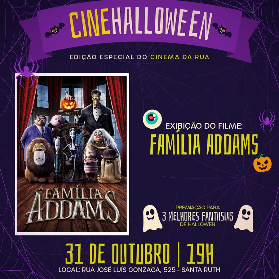 Depois de passar pelos bairros Machado, São Cristóvão e pela Praça Acrísio Alvarenga, no Centro, o projeto chega à sua quarta edição de 2025 com a exibição do filme “A Família Addams” e um concurso de fantasias com premiação para os três melhores figurinos da noite.