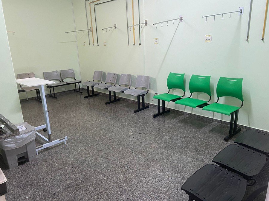 Além disso, foram instaladas longarinas para acomodar até 18 pacientes, com a possibilidade de adicionar mais cinco cadeiras conforme a demanda.