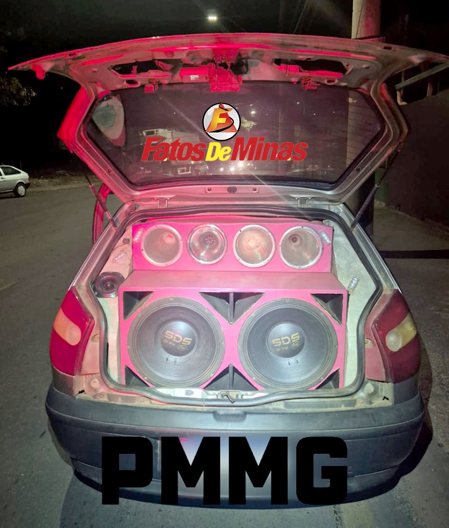 Na sequência, no bairro Machado, as equipes localizaram um veículo utilizado para a prática de perturbação do sossego. O carro, equipado com som automotivo em volume alto, foi apreendido e removido para o pátio credenciado, encerrando o incômodo na área.