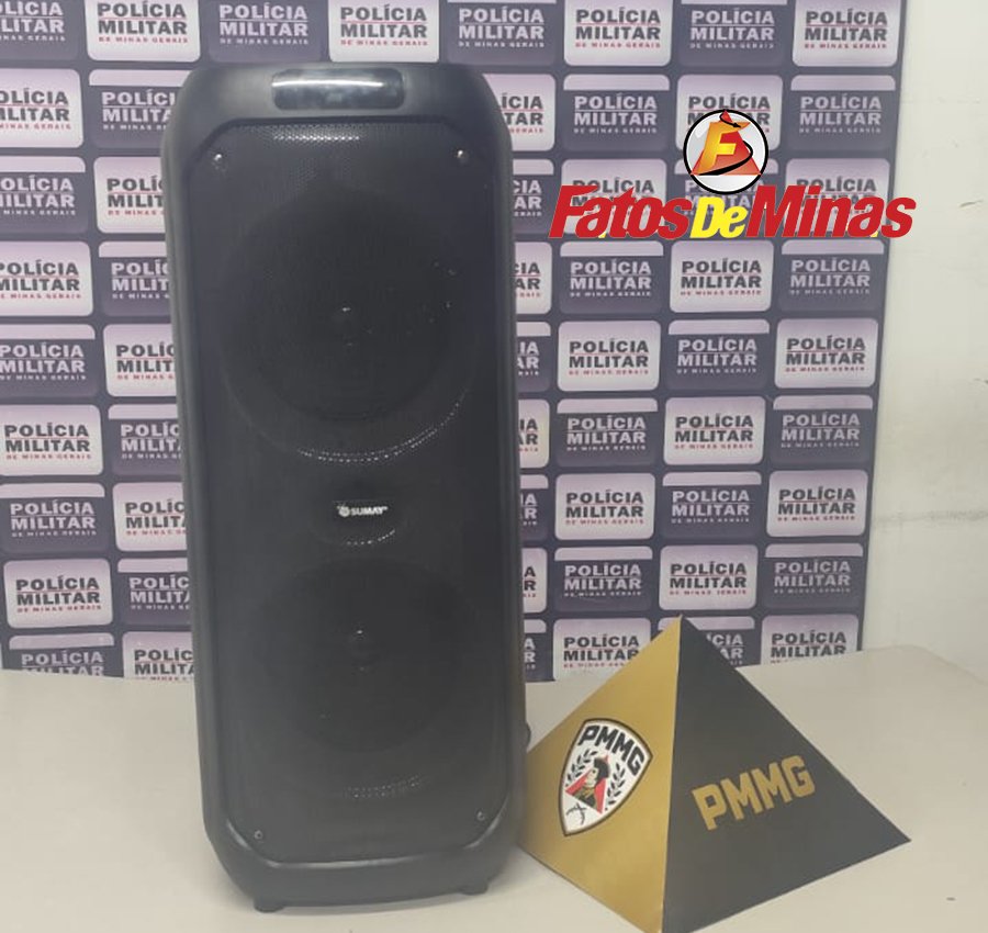 A caixa de som — da marca Sumay — foi apreendida.