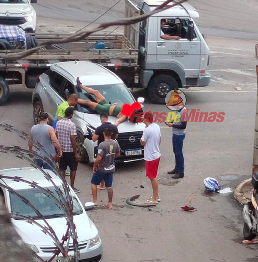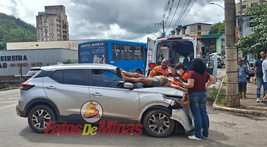 A primeira vítima identificada foi uma mulher de 45 anos, que estava na garupa da motocicleta. Com o impacto, ela foi ejetada e projetada sobre o capô do automóvel. Quando os socorristas chegaram, a vítima estava em decúbito dorsal, consciente, lúcida e orientada, relatando dores na região cervical e no ombro esquerdo, pontos relacionados ao impacto. A equipe realizou a estabilização cervical, imobilização em prancha longa e a remoção segura para a ambulância, onde teve início o atendimento pré-hospitalar.