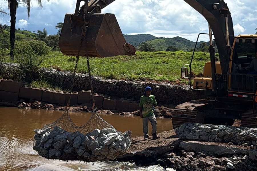 Para garantir a estabilidade da barragem e a segurança da captação de água, estão sendo utilizados blocos de concreto com peso aproximado de 1.700 quilos, além da instalação de gabiões do tipo saco no trecho afetado. As medidas visam restabelecer o nível adequado do rio e garantir o pleno funcionamento do sistema de abastecimento.