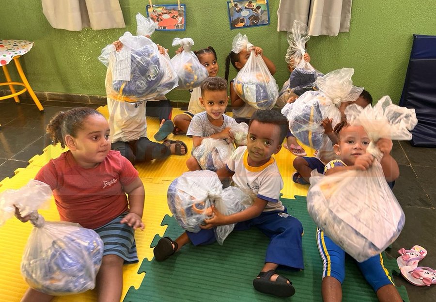 Cada kit contém 10 peças entre camisas de mangas curtas e compridas, jaquetas, calças, bermudas, shorts-saias, e regatas conforme idade e sexo dos estudantes.