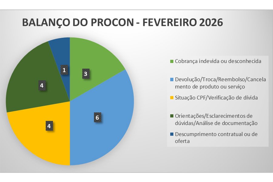 Das 18 solicitações, 13 delas foram solucionadas mediante contato telefônico ou envio de e-mail com os consumidores recebendo orientação. Cinco atendimentos se encontram em situação pendente, aguardando retorno das reclamadas, assim como uma demanda de janeiro, que se encontra na mesma situação.