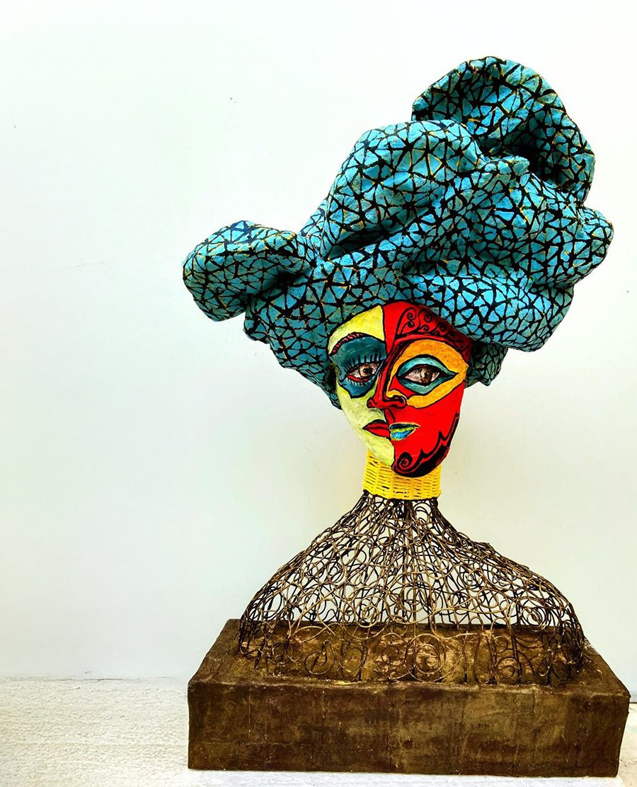 “Jayme Guerra constrói, em cada escultura, verdadeiras arquiteturas do espírito. Fragmentos humanos, estruturas geométricas, grafismos ancestrais e formas quase orgânicas se entrelaçam em composições que desafiam a linearidade e evocam múltiplas camadas de leitura. Suas figuras transitam entre o humano e o arquetípico, sugerindo uma origem comum — uma matriz criadora que se manifesta no contraste entre cor e silêncio, peso e suspensão, ancestralidade e invenção”, destaca Adriana Scartaris.