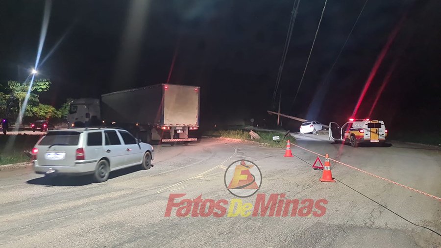Policiais rodoviários isolaram o local, que teve a energia desligada por funcionários de uma empreiteira da Cemig, que providenciou a troca do poste que ficou destruído.