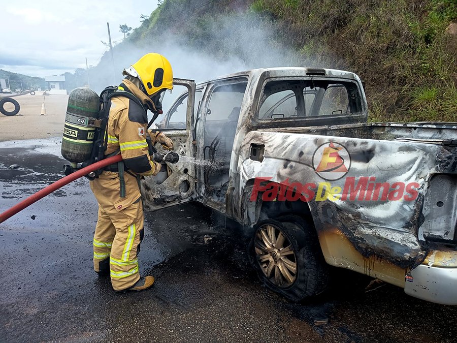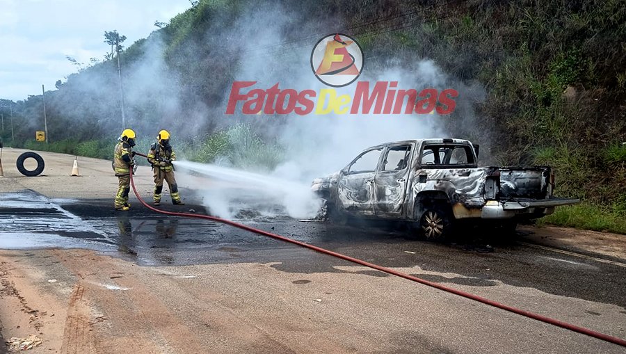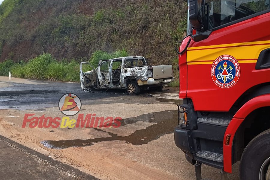 ITABIRA (MG) – Uma caminhonete foi completamente destruída por um incêndio na tarde desta quinta-feira, dia 26 de fevereiro de 2026, na rodovia MG-129, na altura do km 102, em Itabira.