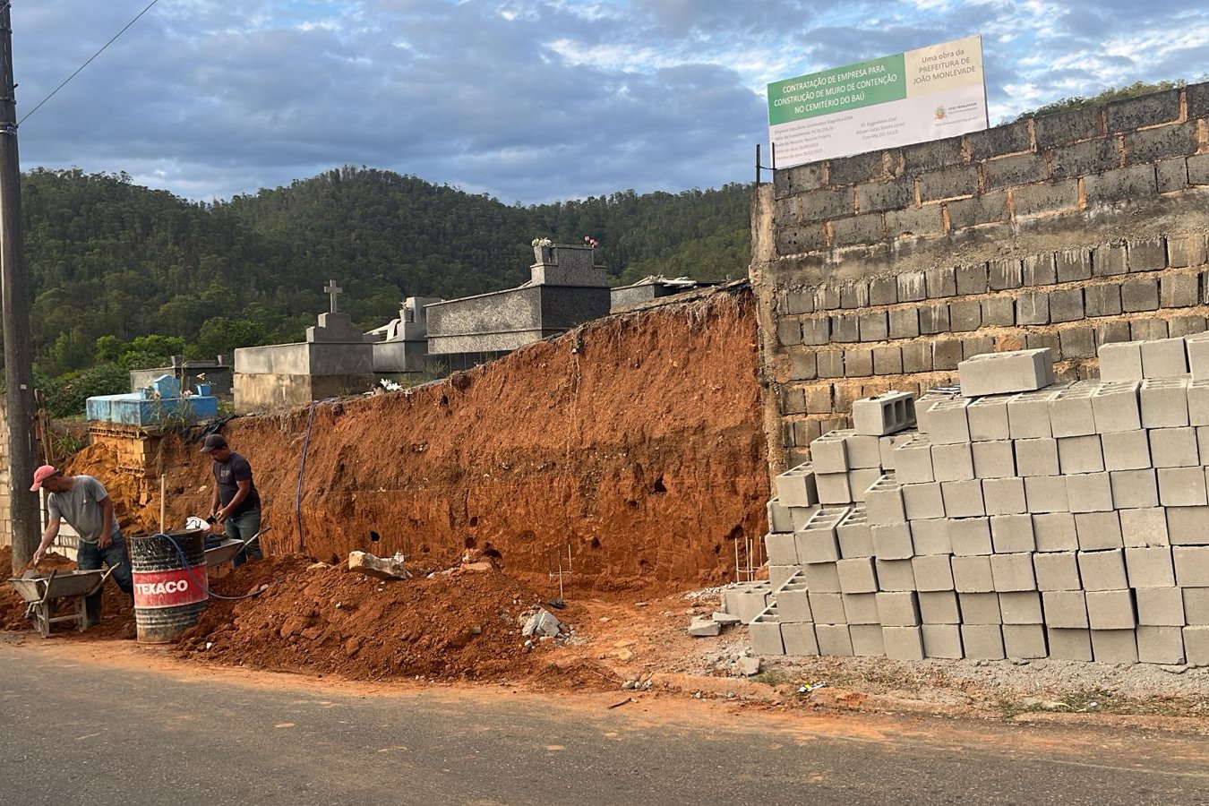 JOÃO MONLEVADE (MG) – A Prefeitura de João Monlevade, por meio da Secretaria Municipal de Obras, está finalizando a construção de parte do muro do Cemitério do Baú. A intervenção foi iniciada em 29 de setembro e tem previsão de conclusão antes do feriado de Finados, dia 02 de novembro, garantindo mais segurança para visitantes e preservação da área.