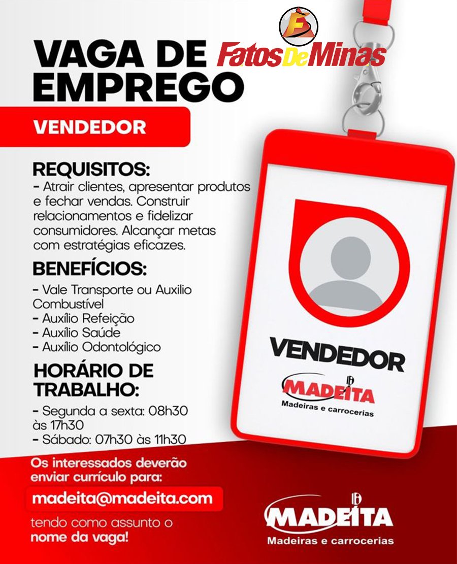 Os interessados nas vagas de emprego devem enviar currículo para o email madeita@madeita.com tendo como assunto o nome da vaga de emprego da preferência.