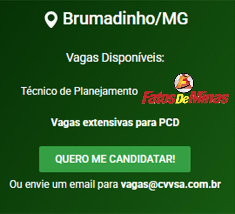 ATENÇÃO: Os interessados pelas vagas devem enviar currículo para o email: vagas@cvvsa.com.br