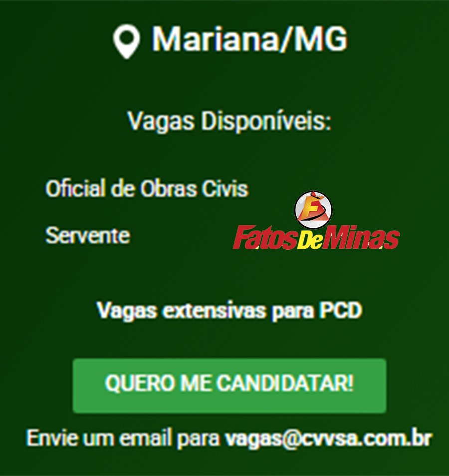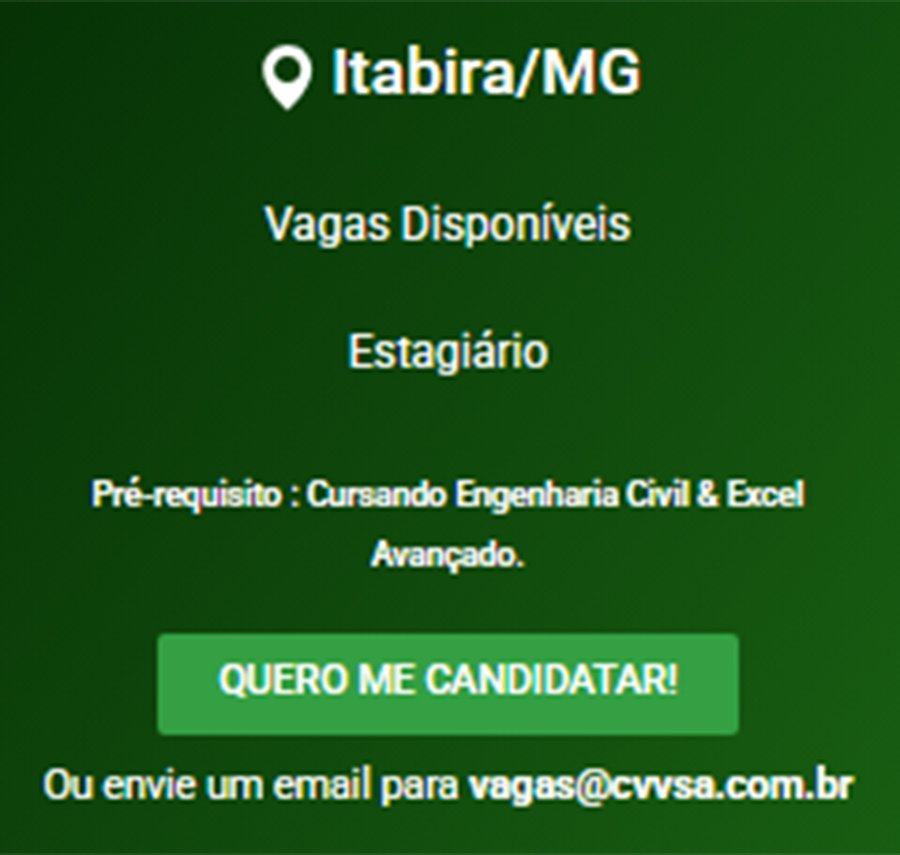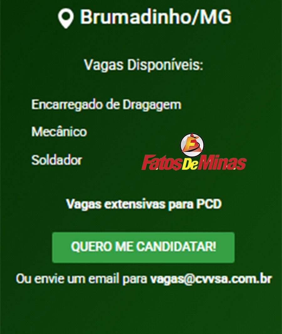 ATENÇÃO: Os interessados pelas vagas devem enviar currículo para o email: vagas@cvvsa.com.br