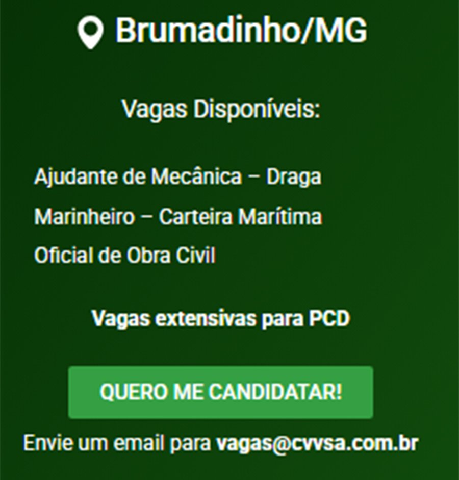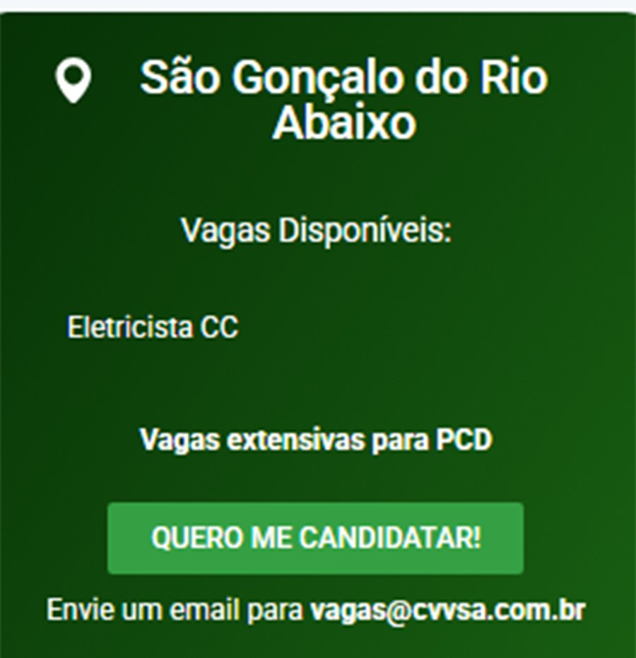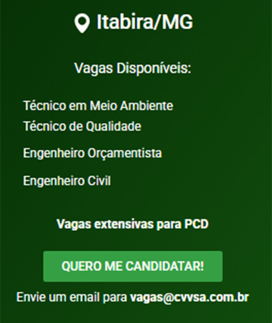 ATENÇÃO: Os interessados pelas vagas devem enviar currículo para o email: vagas@cvvsa.com.br