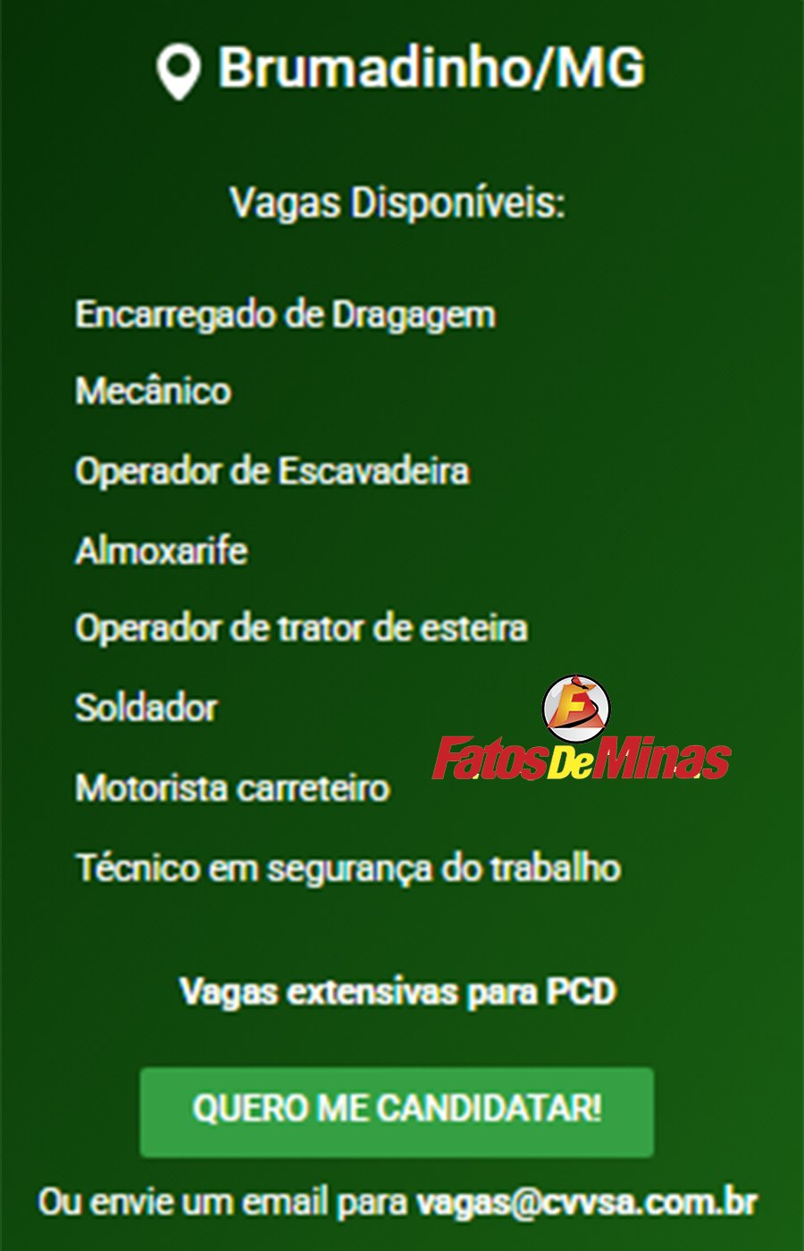 ATENÇÃO: Os interessados pelas vagas devem enviar currículo para o email: vagas@cvvsa.com.br