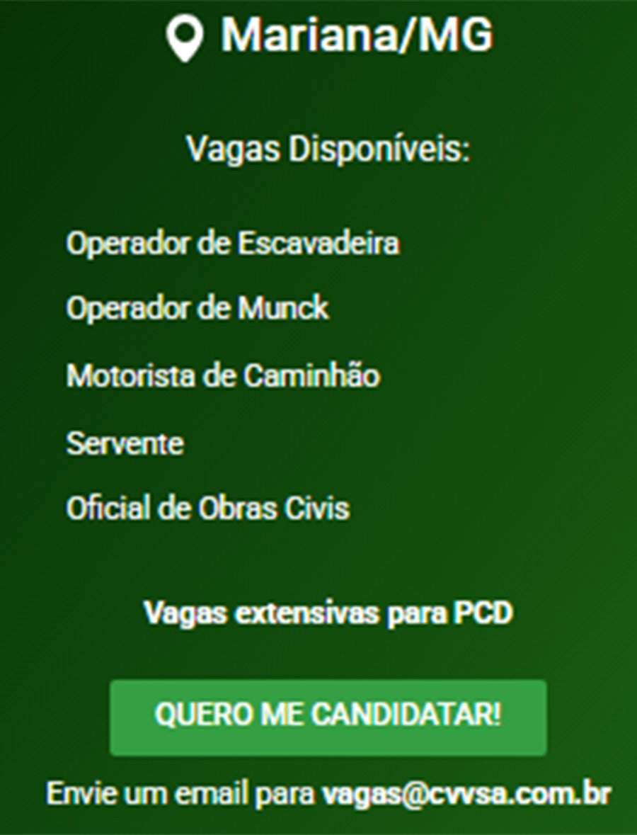 ATENÇÃO: Os interessados pelas vagas devem enviar currículo para o email: vagas@cvvsa.com.br