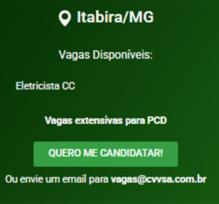 ATENÇÃO: Os interessados pelas vagas devem enviar currículo para o email: vagas@cvvsa.com.br