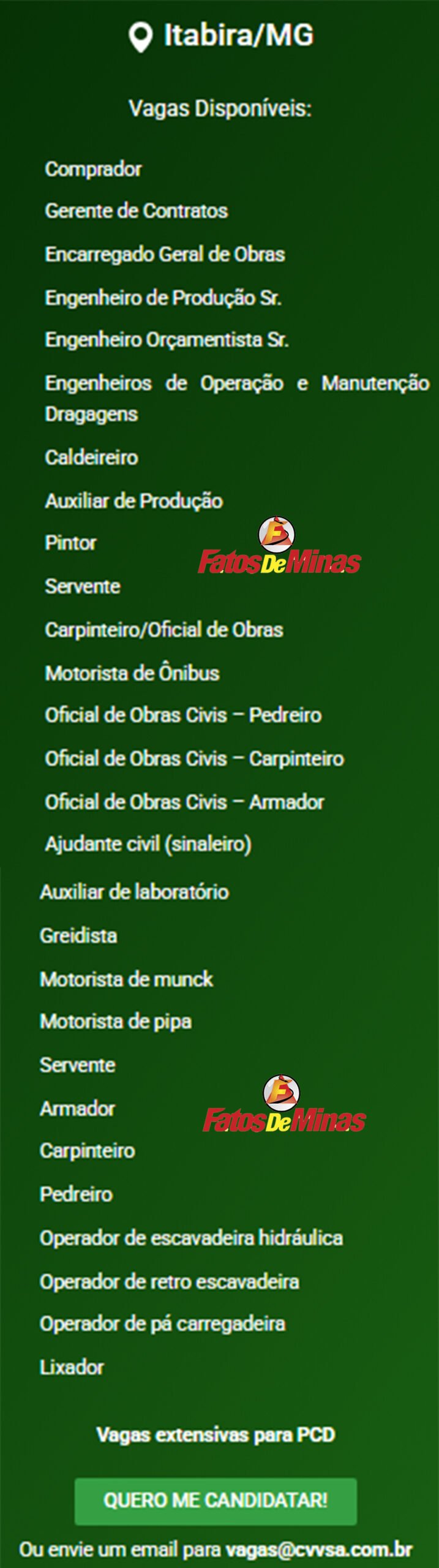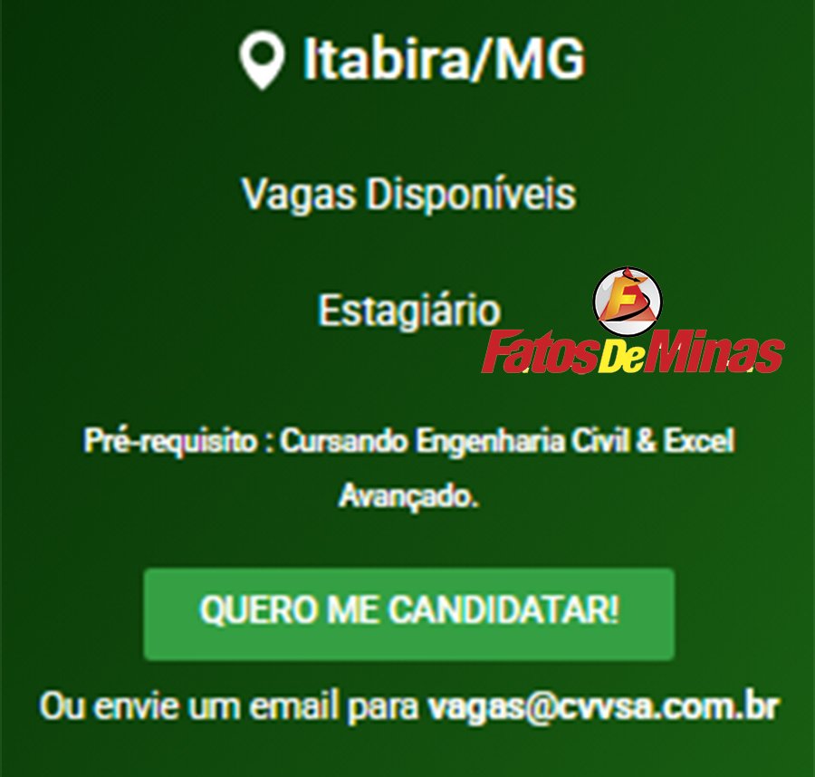ATENÇÃO: Os interessados pelas vagas devem enviar currículo para o email: vagas@cvvsa.com.br