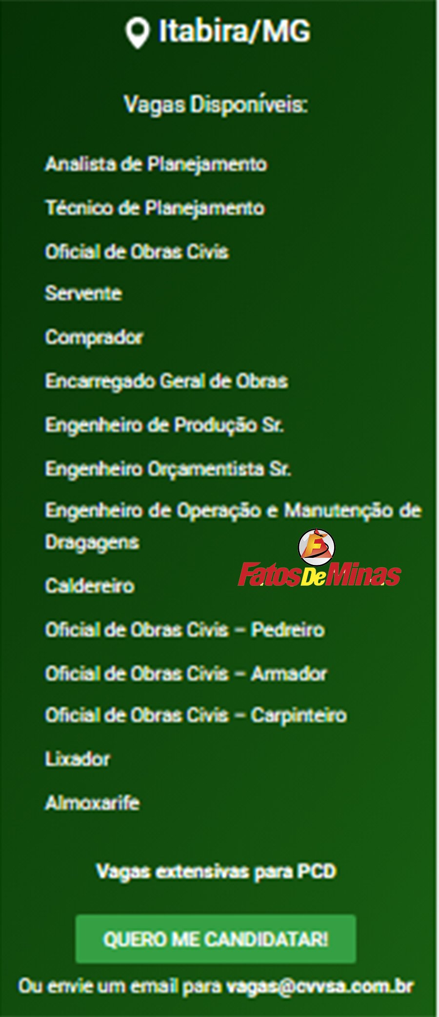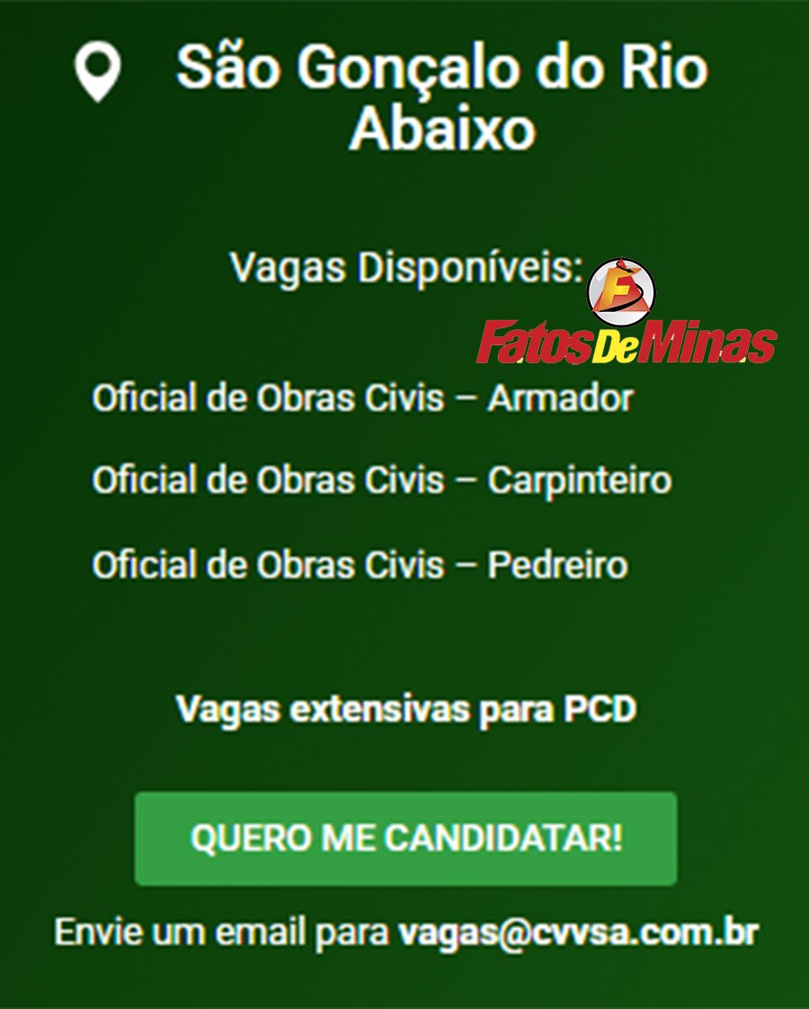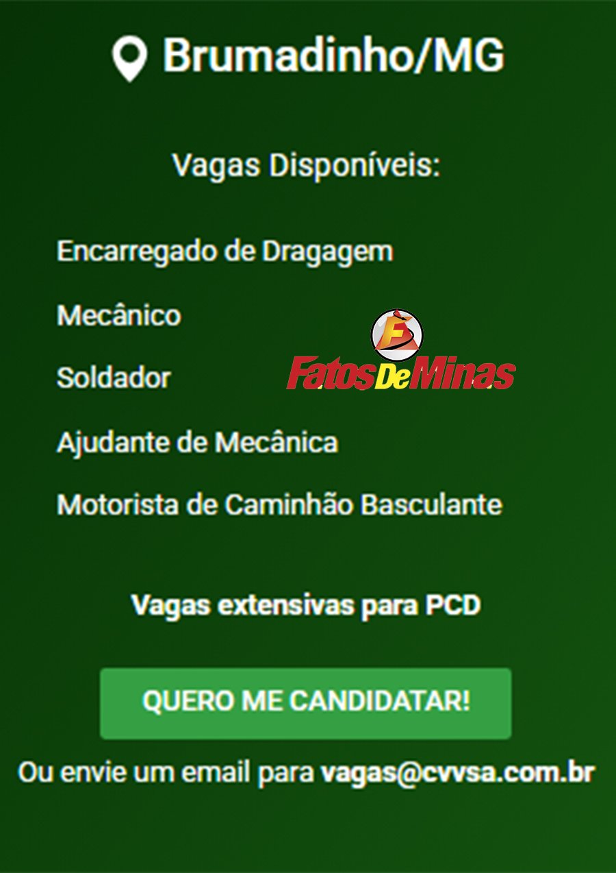 ATENÇÃO: Os interessados pelas vagas devem enviar currículo para o email: vagas@cvvsa.com.br