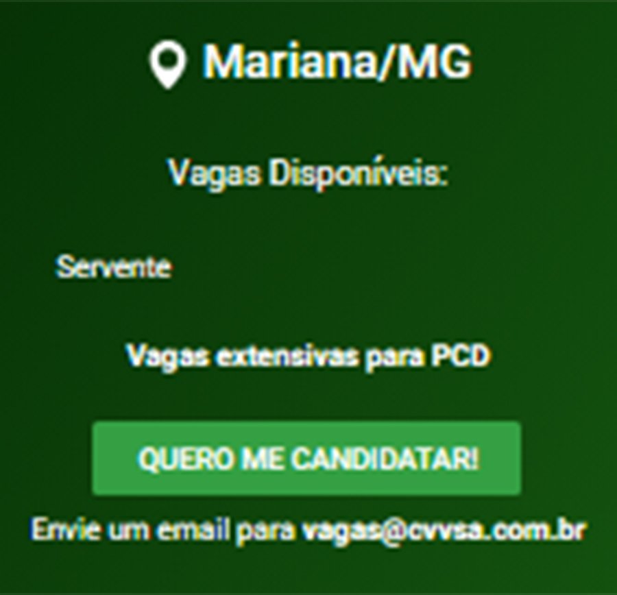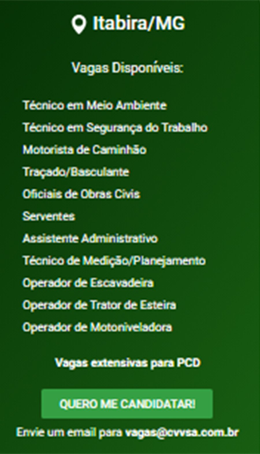 ATENÇÃO: Os interessados pelas vagas devem enviar currículo para o email: vagas@cvvsa.com.br