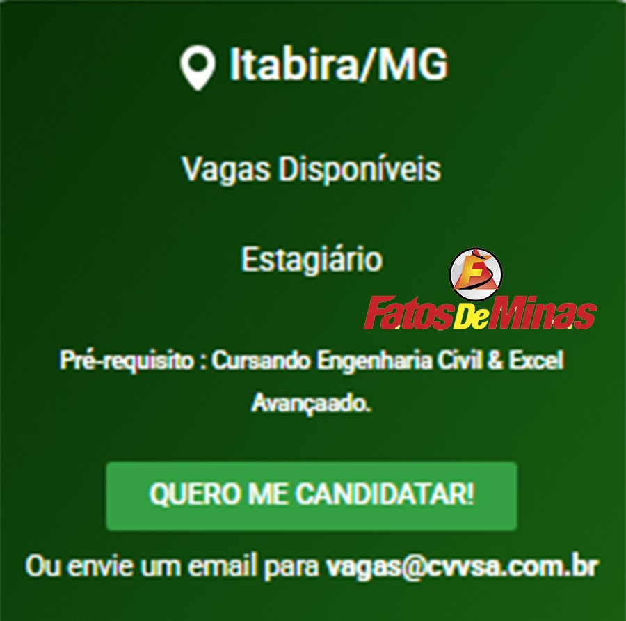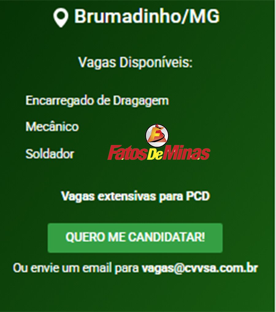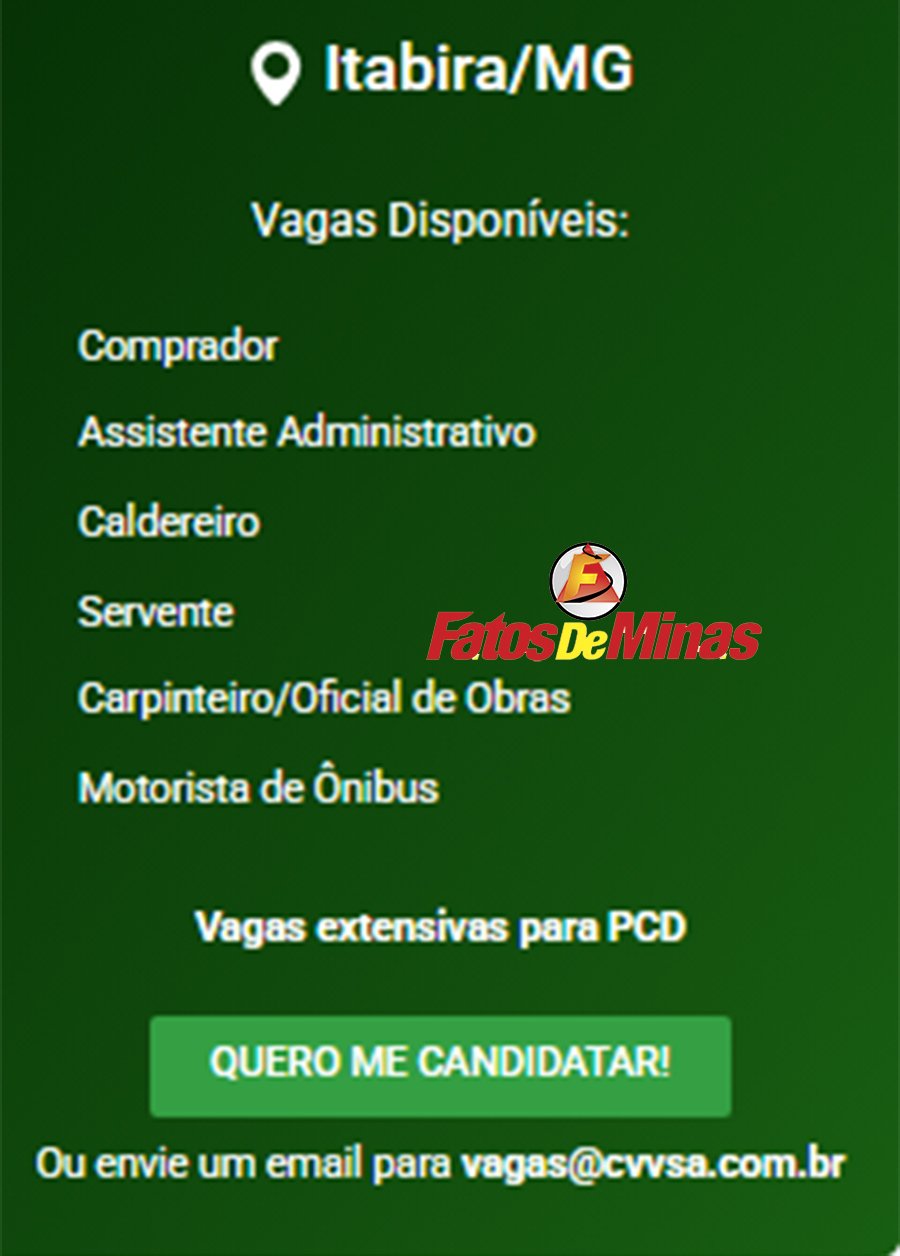 ATENÇÃO: Os interessados pelas vagas devem enviar currículo para o email: vagas@cvvsa.com.br