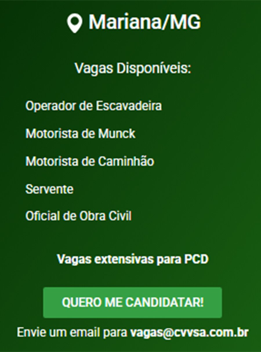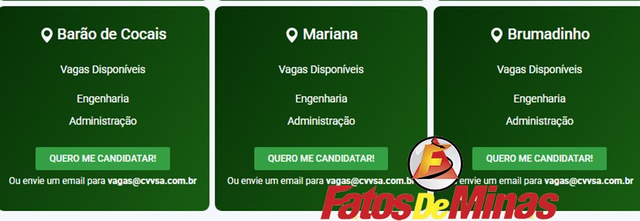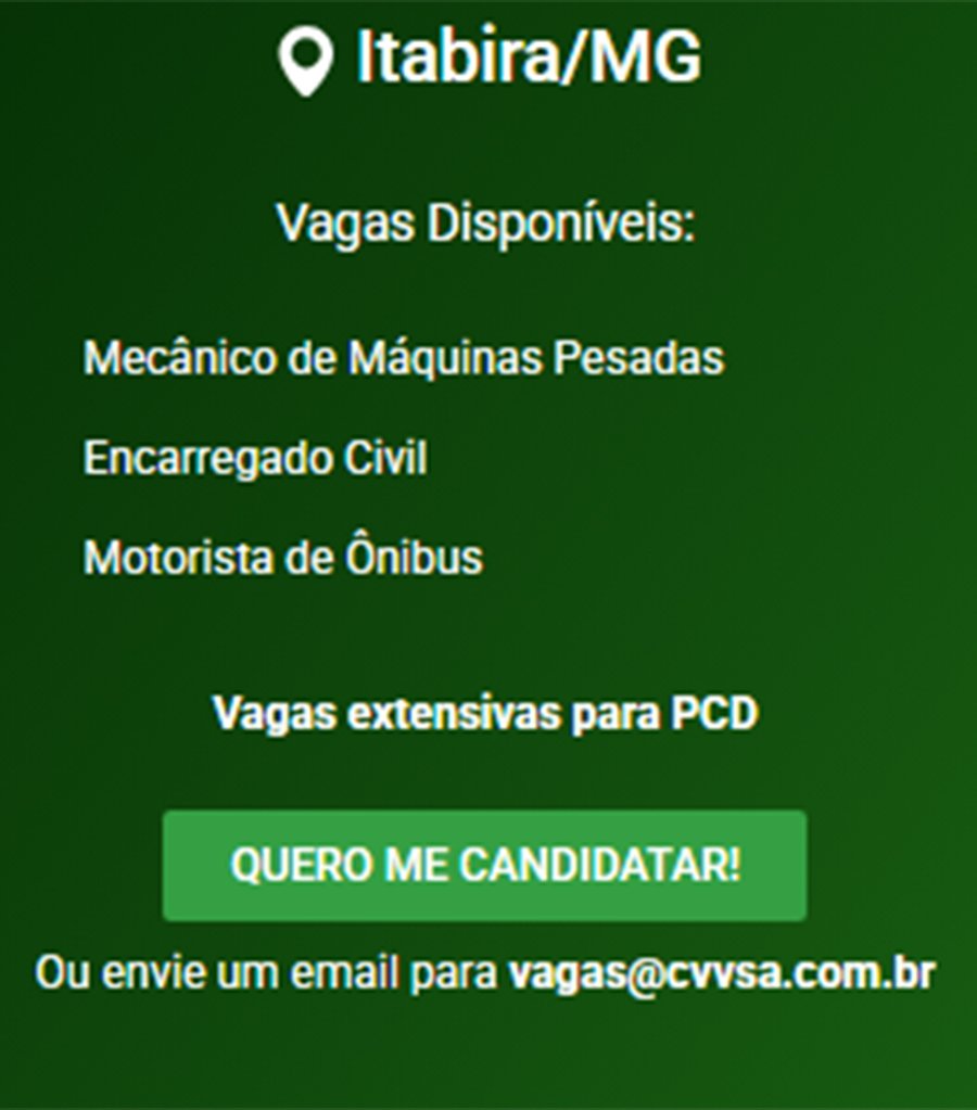 ATENÇÃO: Os interessados pelas vagas devem enviar currículo para o email: vagas@cvvsa.com.br