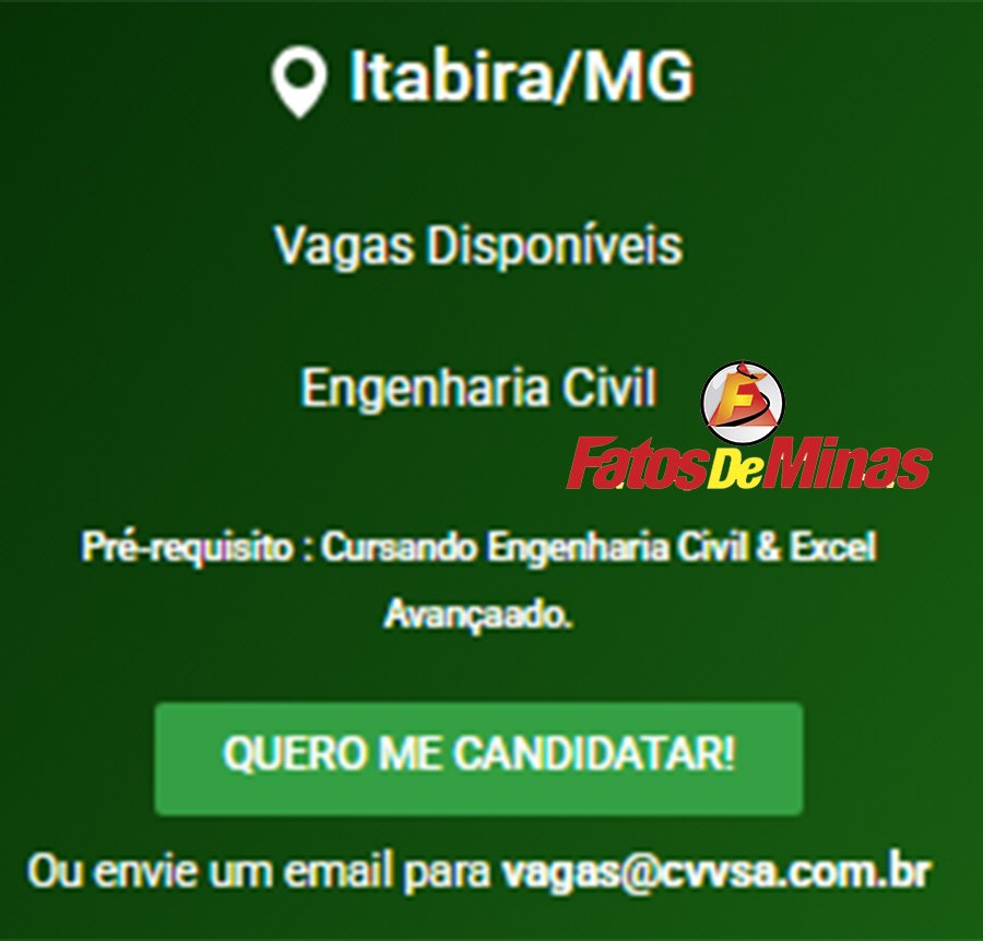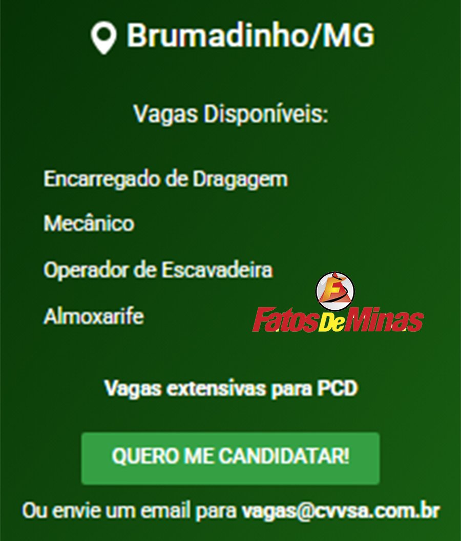 ATENÇÃO: Os interessados pelas vagas devem enviar currículo para o email: vagas@cvvsa.com.br