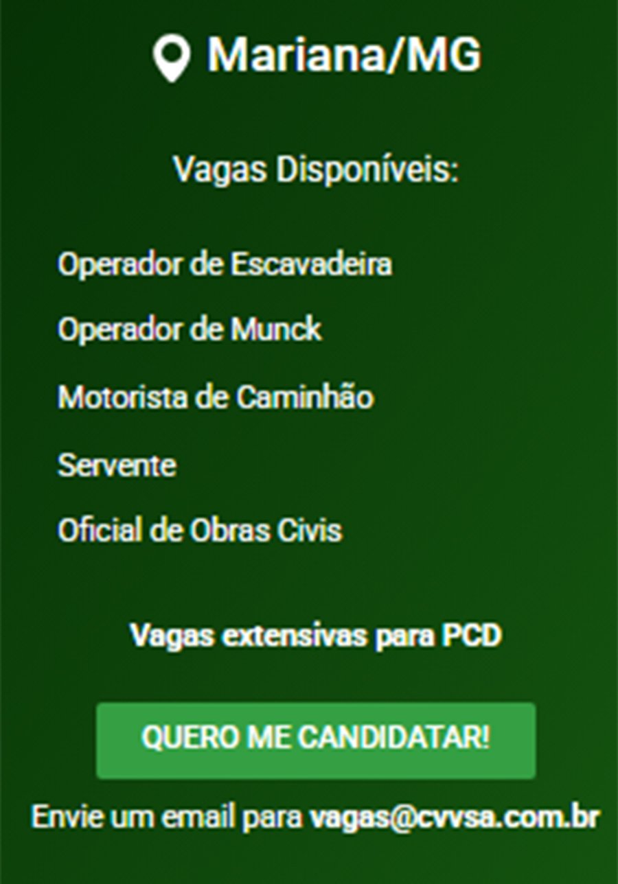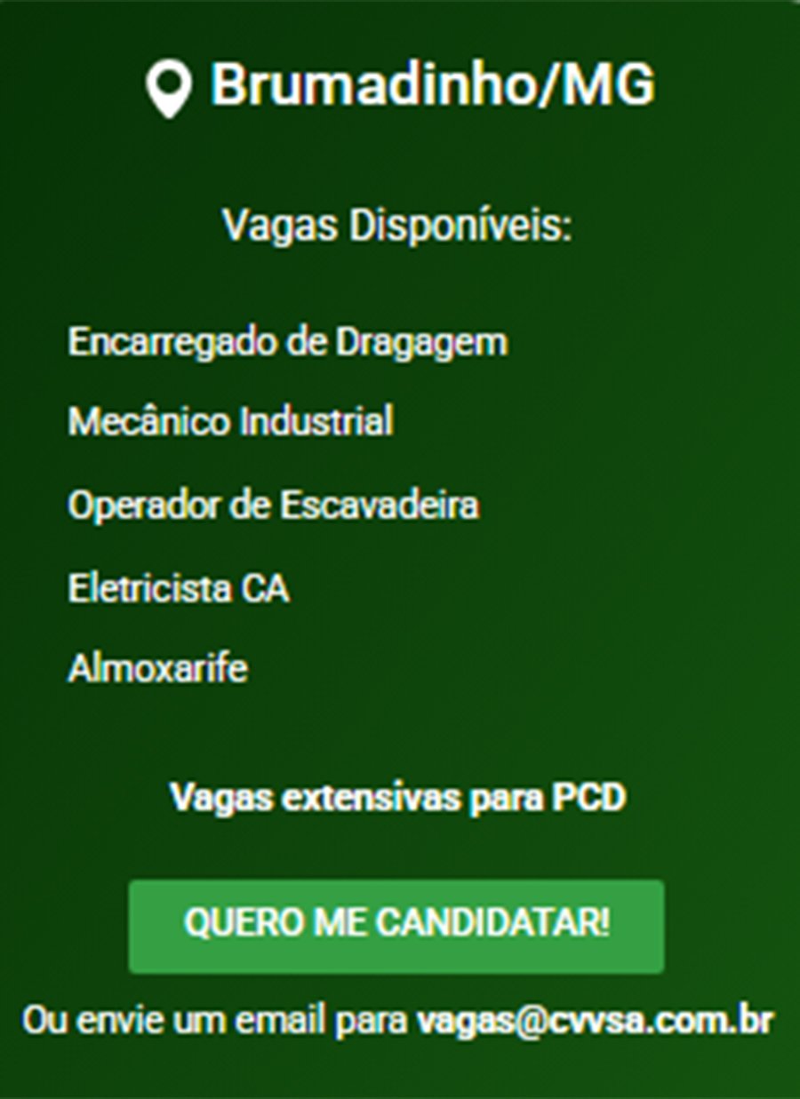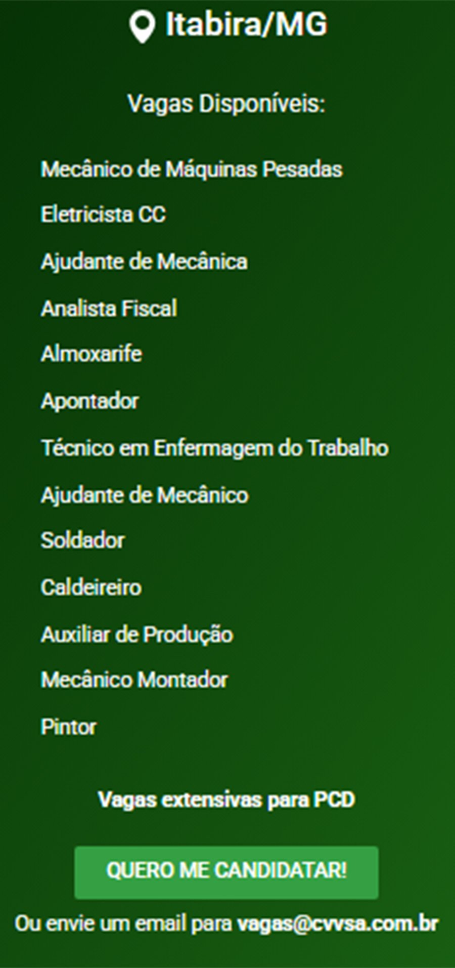 ATENÇÃO: Os interessados pelas vagas devem enviar currículo para o email: vagas@cvvsa.com.br