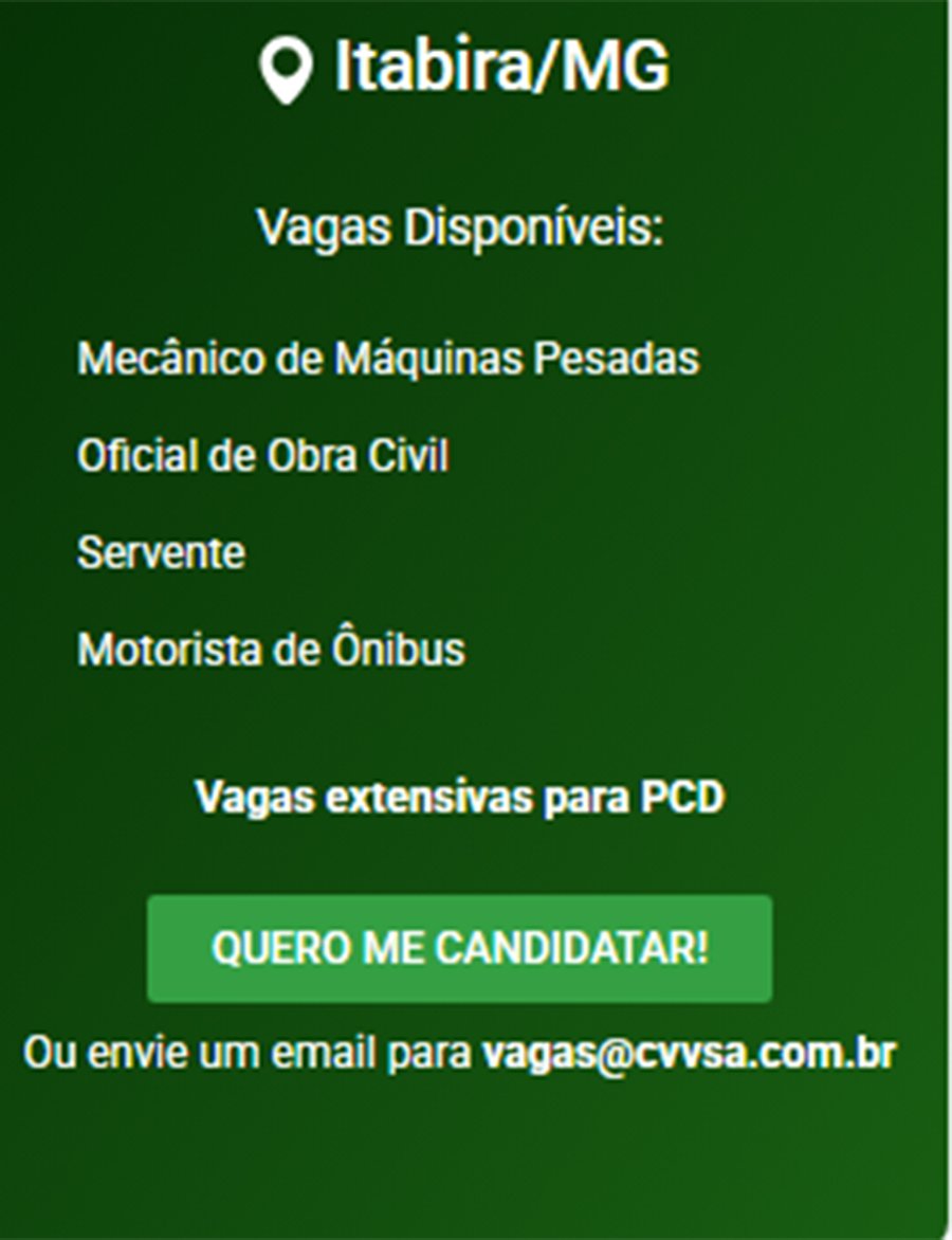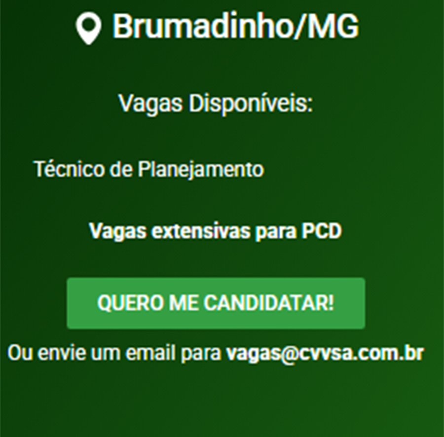 ATENÇÃO: Os interessados pelas vagas devem enviar currículo para o email: vagas@cvvsa.com.br