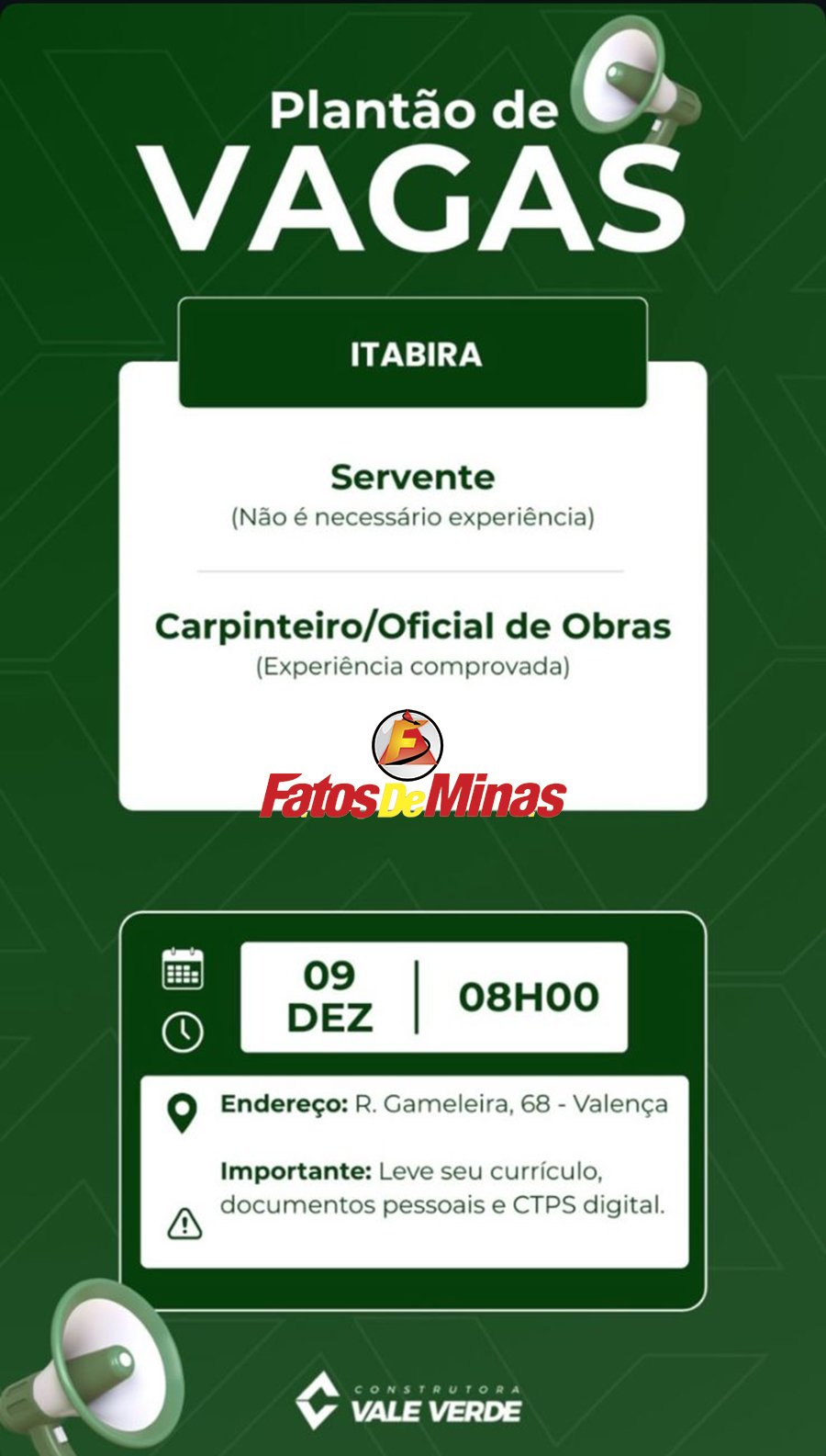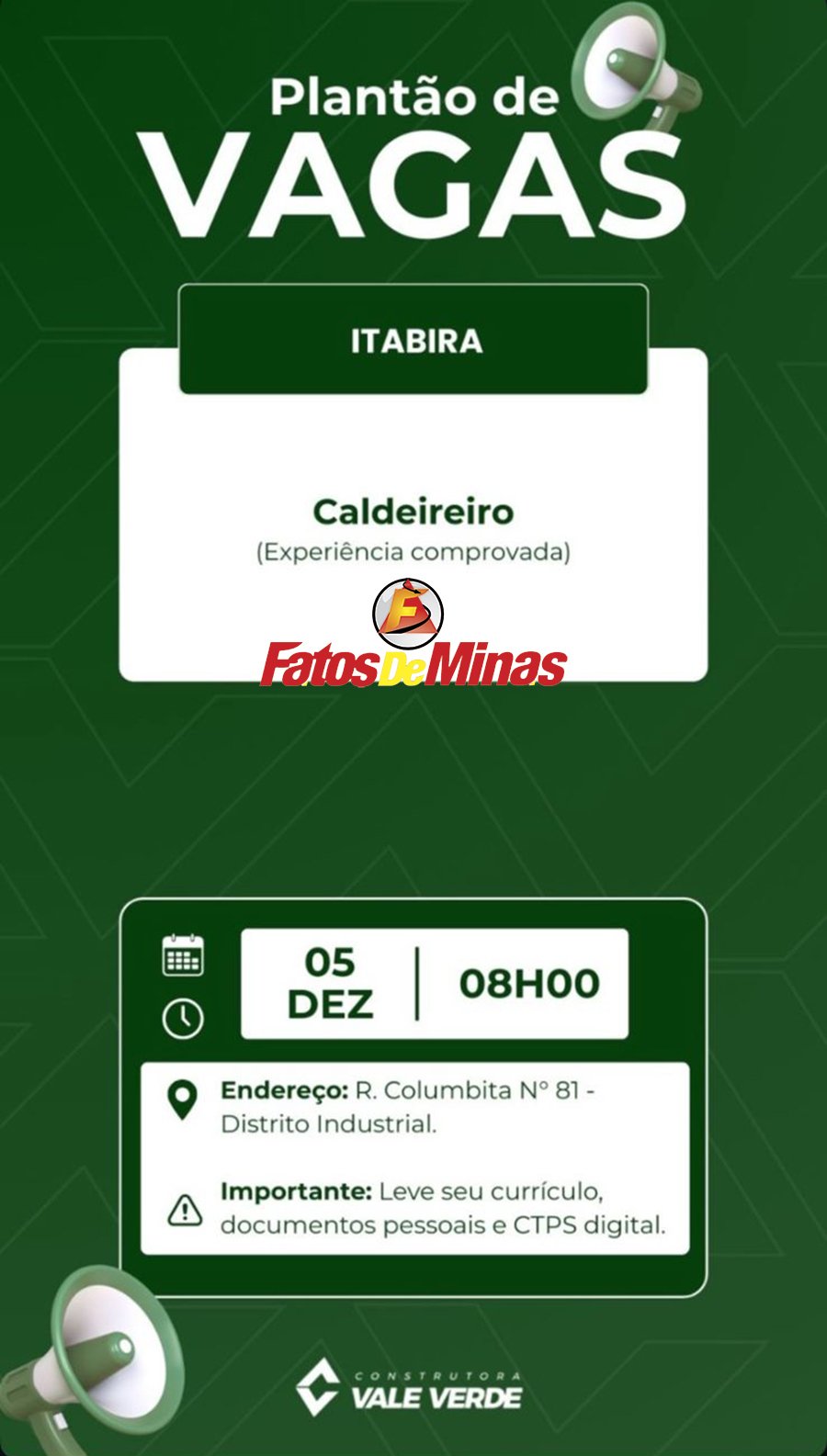 ATENÇÃO: Os interessados pelas vagas devem enviar currículo para o email: vagas@cvvsa.com.br