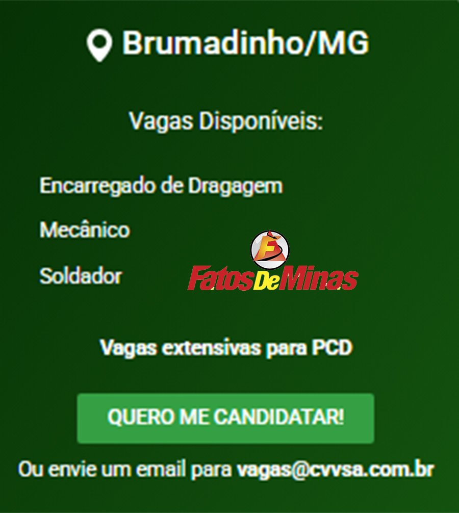 ATENÇÃO: Os interessados pelas vagas devem enviar currículo para o email: vagas@cvvsa.com.br