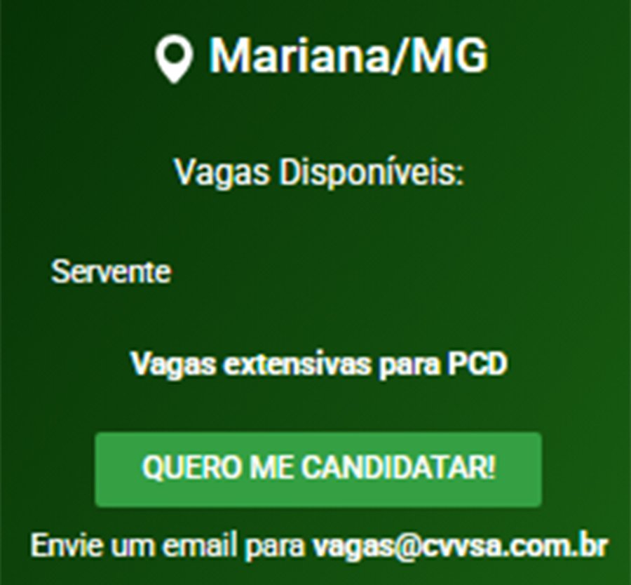 OPORTUNIDADE Confira as vagas de emprego disponíveis na construtora Vale Verde para Itabira, Mariana, São Gonçalo e Brumadinho