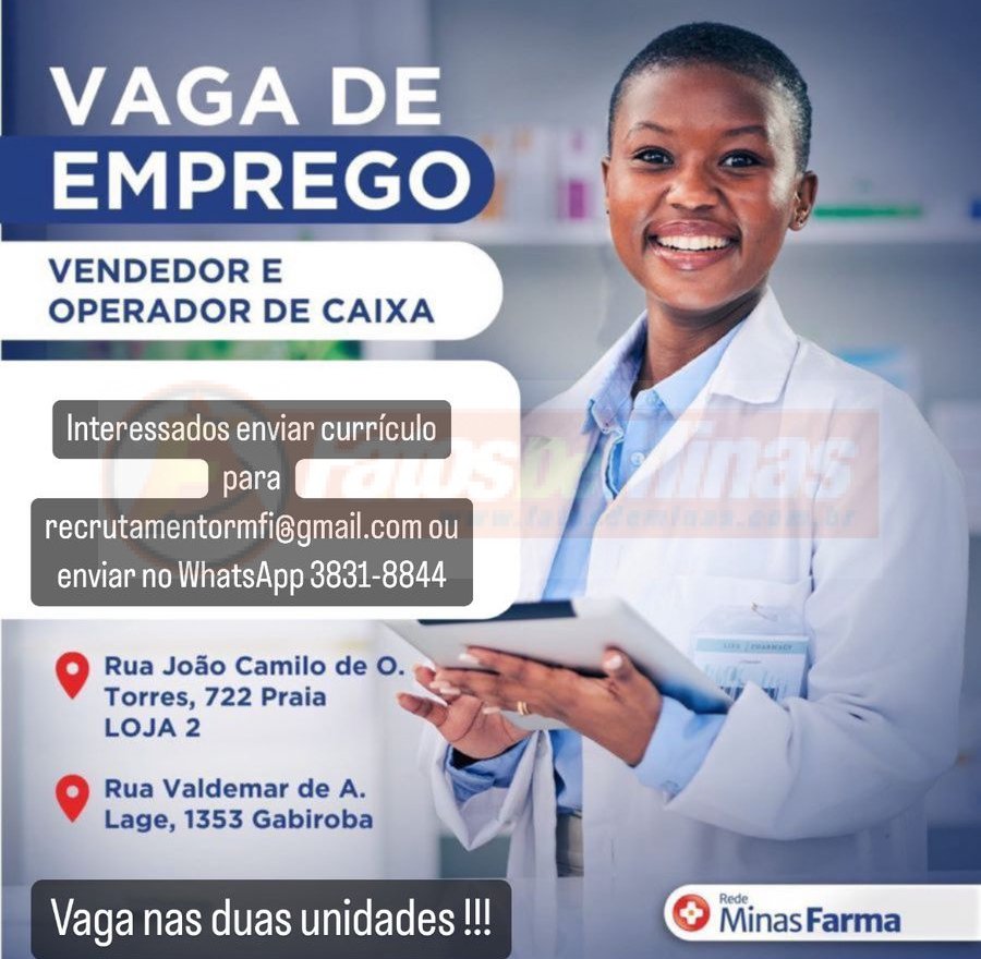 A Rede Farma está com vagas disponíveis em duas de suas unidades em Itabira, para vendedor e operador de caixa.