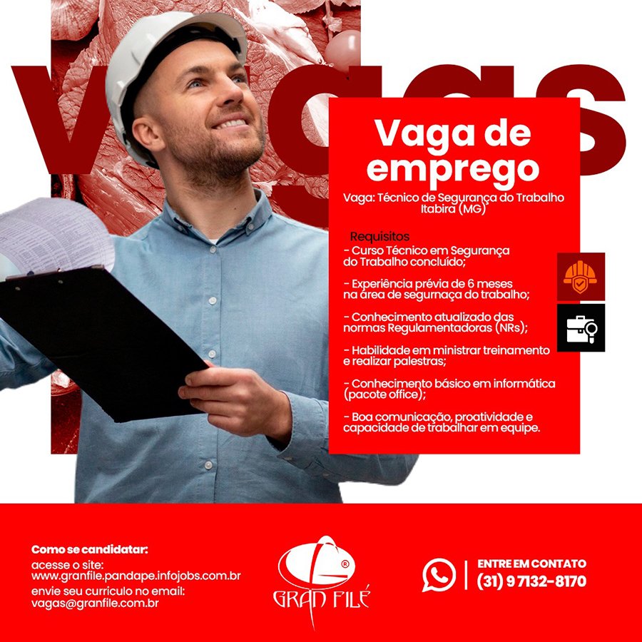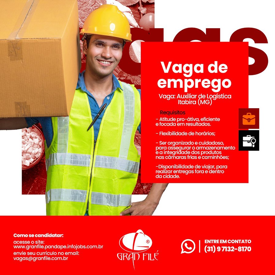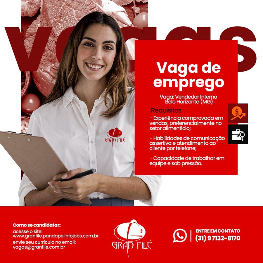 As pessoas interessadas na divulgação, deverão encaminhar os dados da vaga para o e-mail vagas@granfile.com.br com o nome da vaga no assunto do e-mail.
