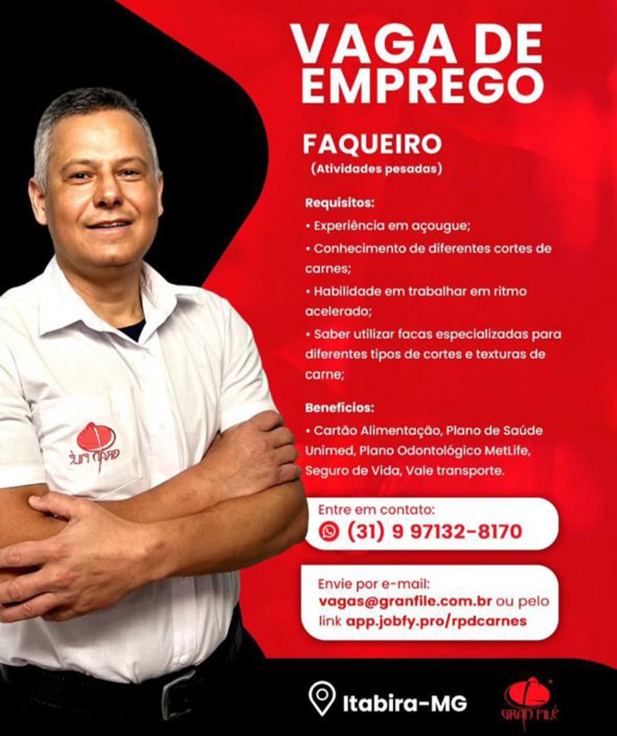 As pessoas interessadas na divulgação, deverão encaminhar os dados da vaga para o e-mail vagas@granfile.com.br com o nome da vaga no assunto do e-mail.