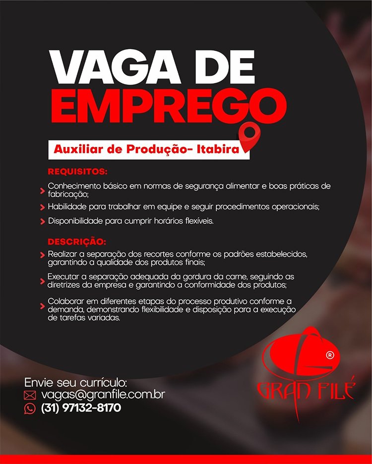 As pessoas interessadas na divulgação, deverão encaminhar os dados da vaga para o e-mail vagas@granfile.com.br com o nome da vaga no assunto do e-mail.
