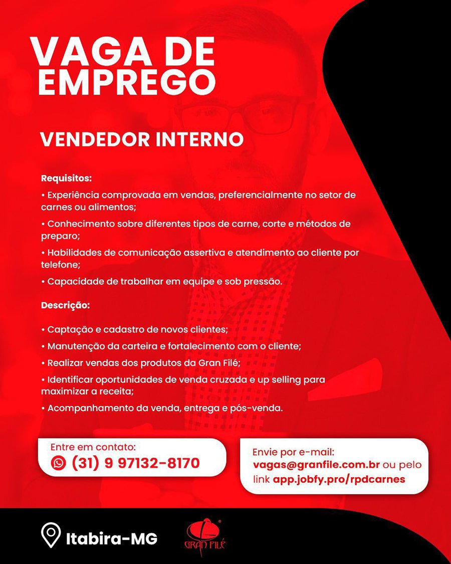 OPORTUNIDADE – Confira as vagas de emprego no Frigorifico Gran Filé em Itabira nesta segunda-feira, dia 6 de abril