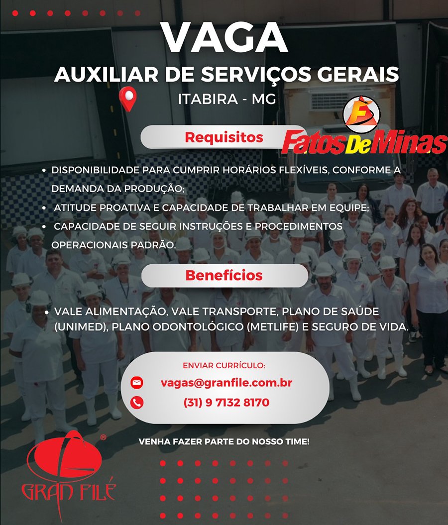 As pessoas interessadas na divulgação, deverão encaminhar os dados da vaga para o e-mail vagas@granfile.com.br com o nome da vaga no assunto do e-mail.