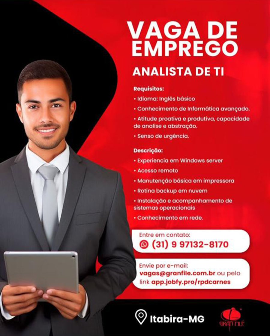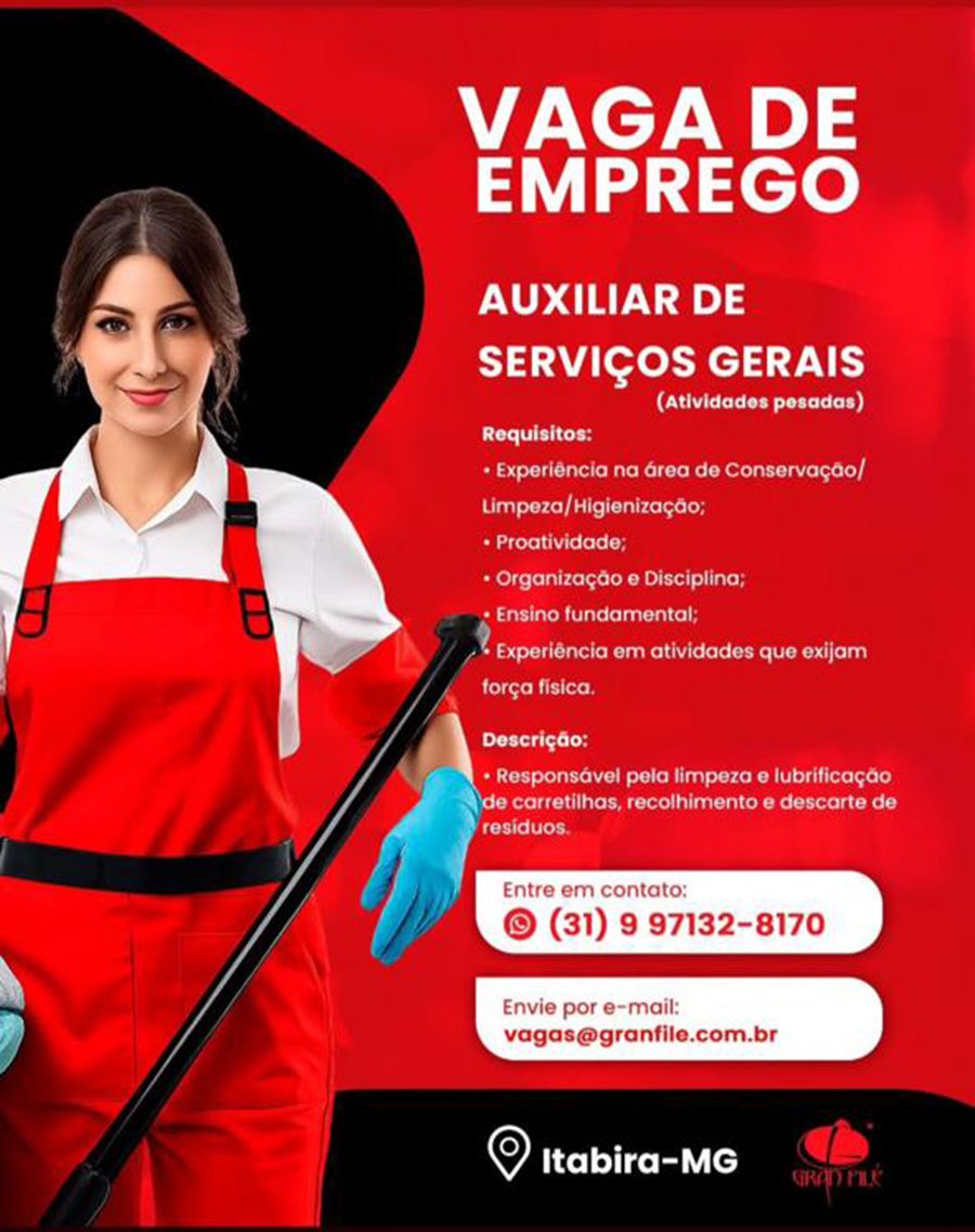As pessoas interessadas na divulgação, deverão encaminhar os dados da vaga para o e-mail vagas@granfile.com.br com o nome da vaga no assunto do e-mail.