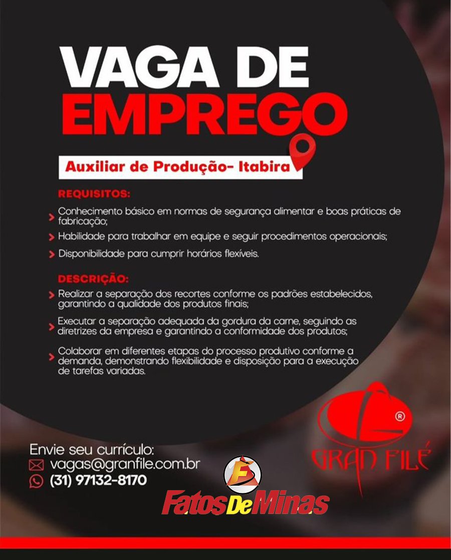 O Portal Fatos de Minas não faz o agendamento de entrevistas, apenas divulga a vaga.