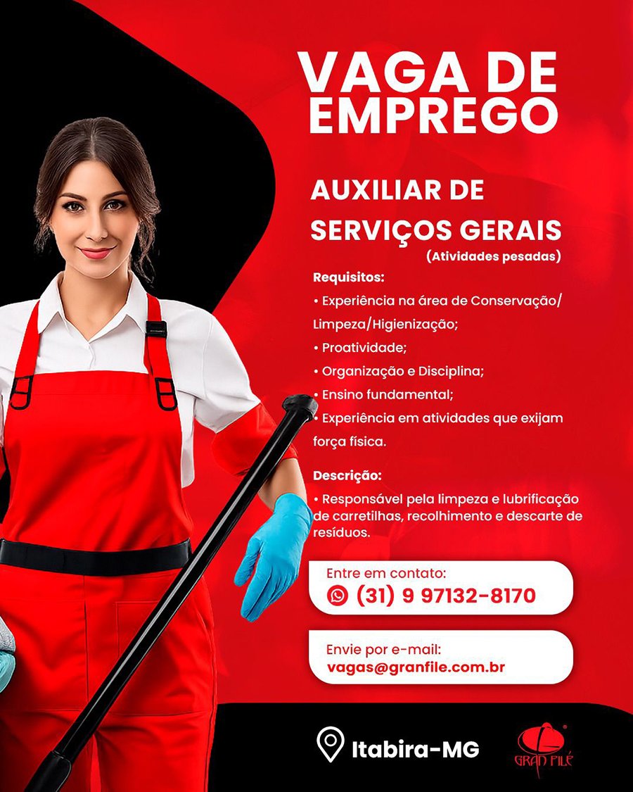 As pessoas interessadas na divulgação, deverão encaminhar os dados da vaga para o e-mail vagas@granfile.com.br com o nome da vaga no assunto do e-mail.
