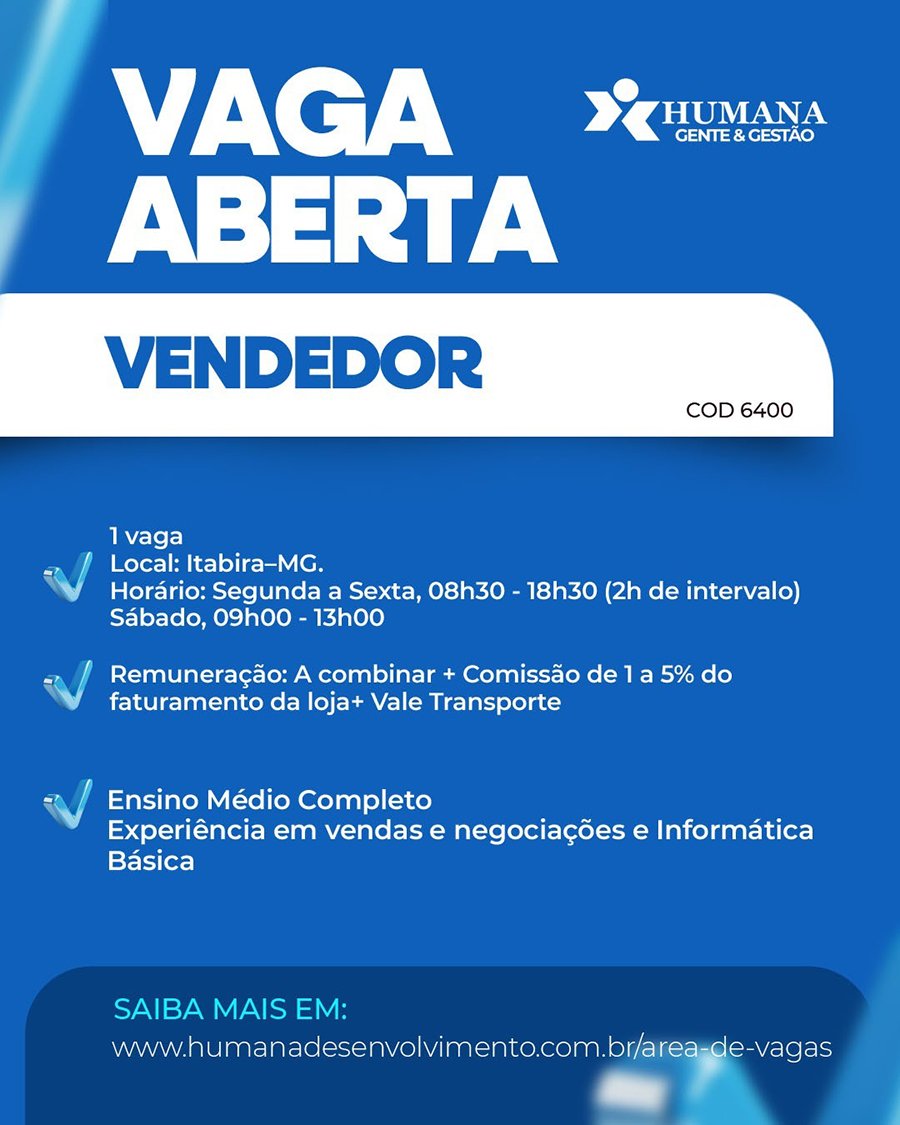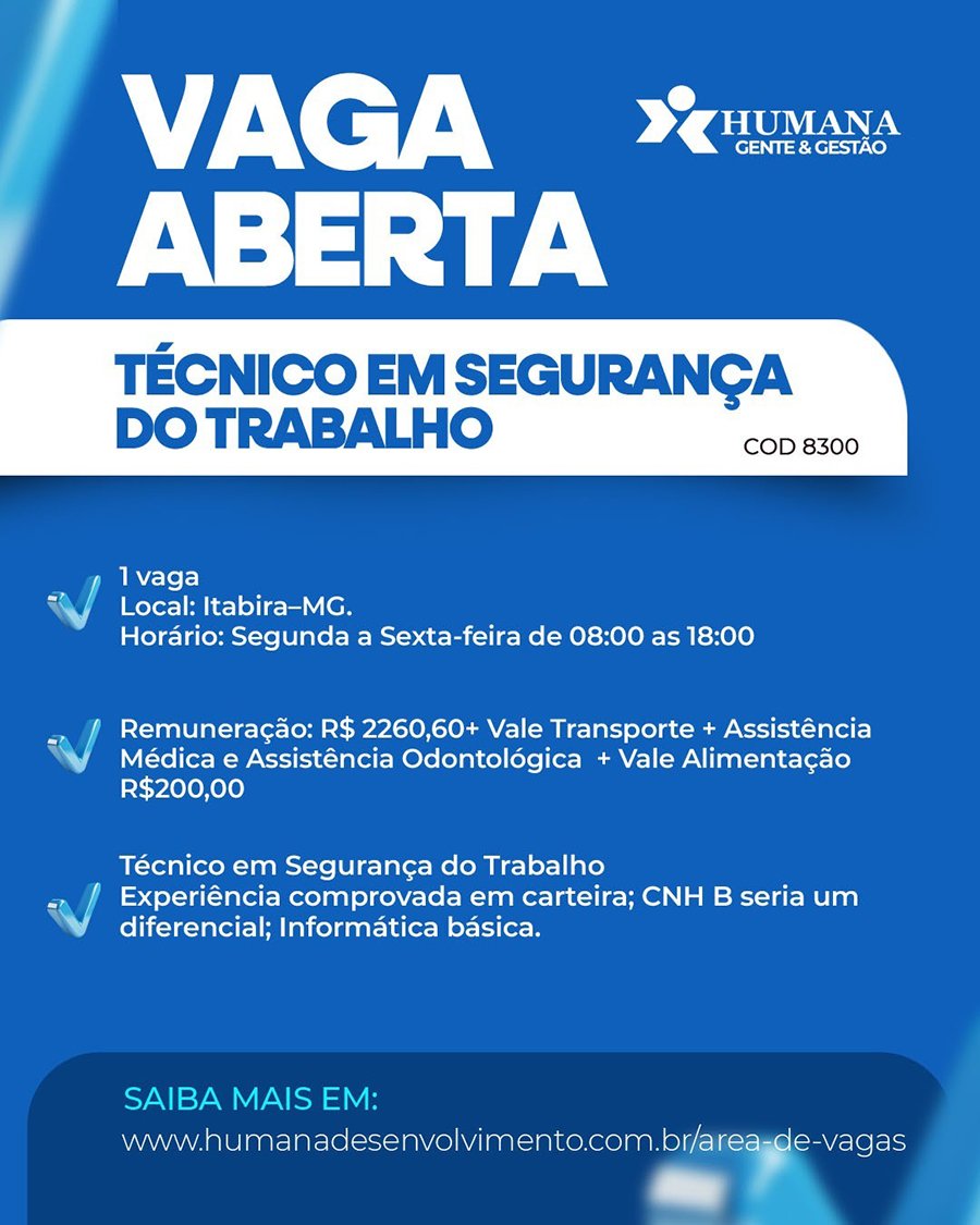 OPORTUNIDADE Confira as vagas de emprego ofertadas pela Humana Desenvolvimento para esta quarta-feira, 15 de outubro