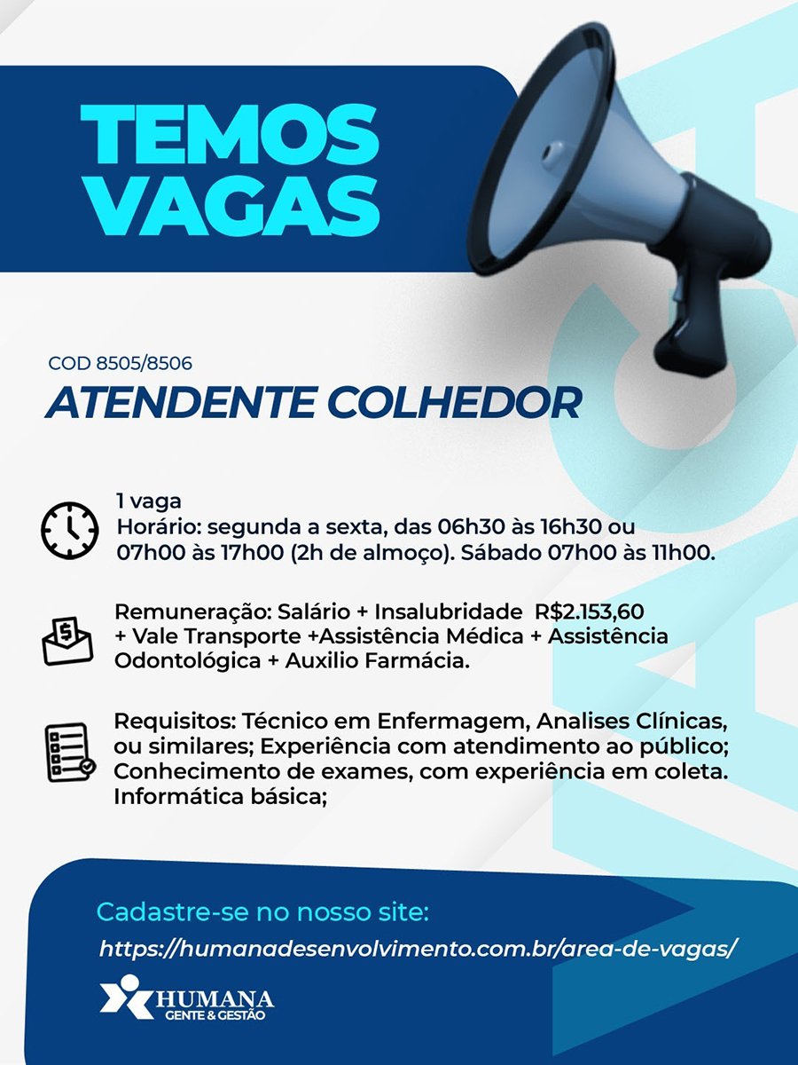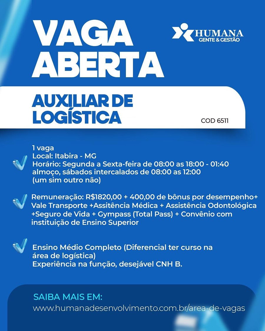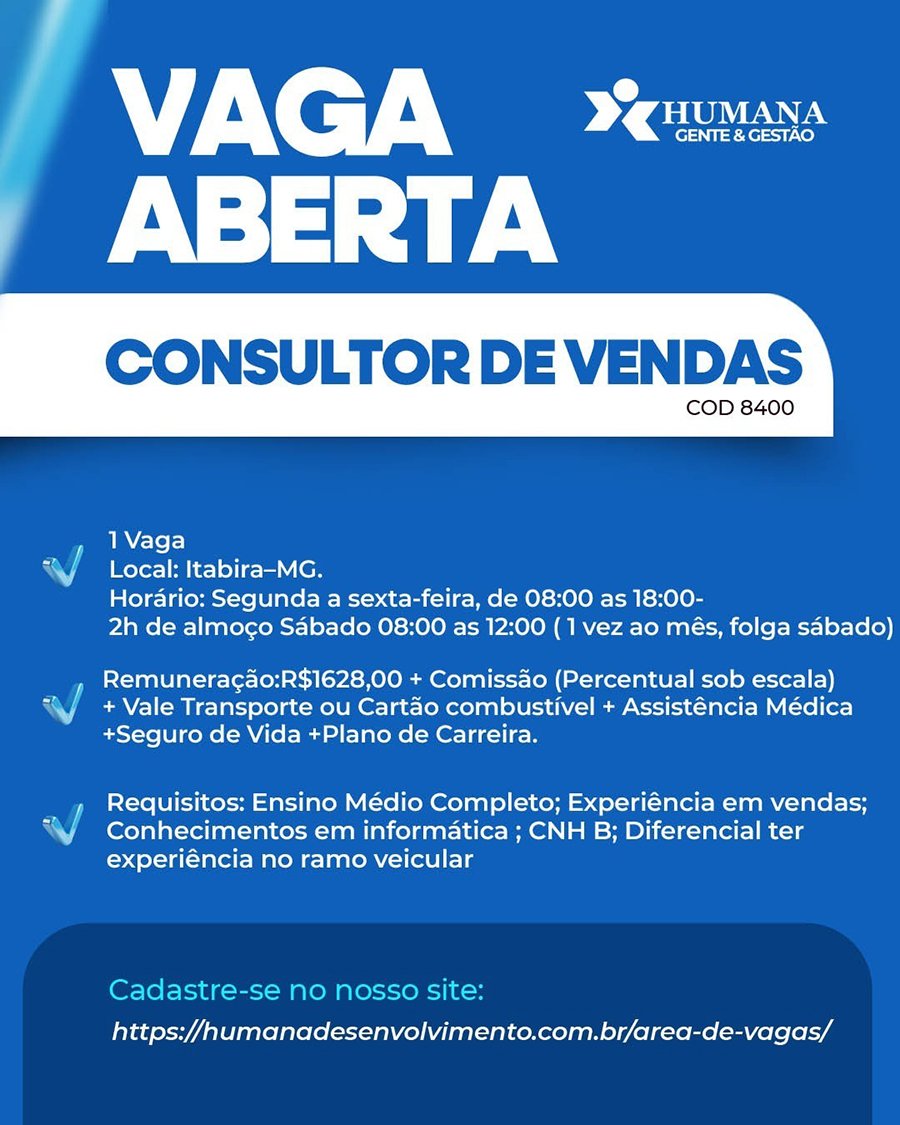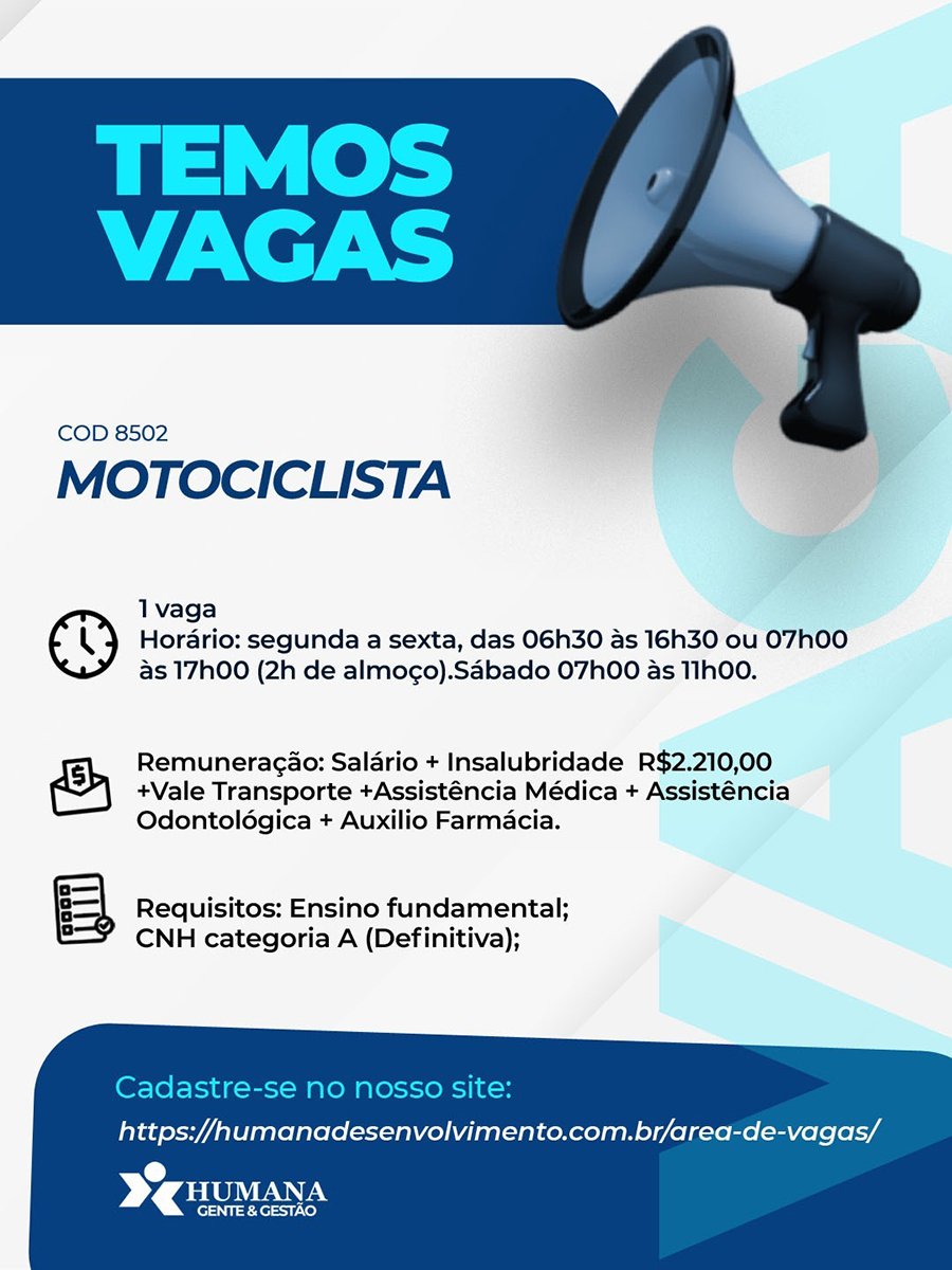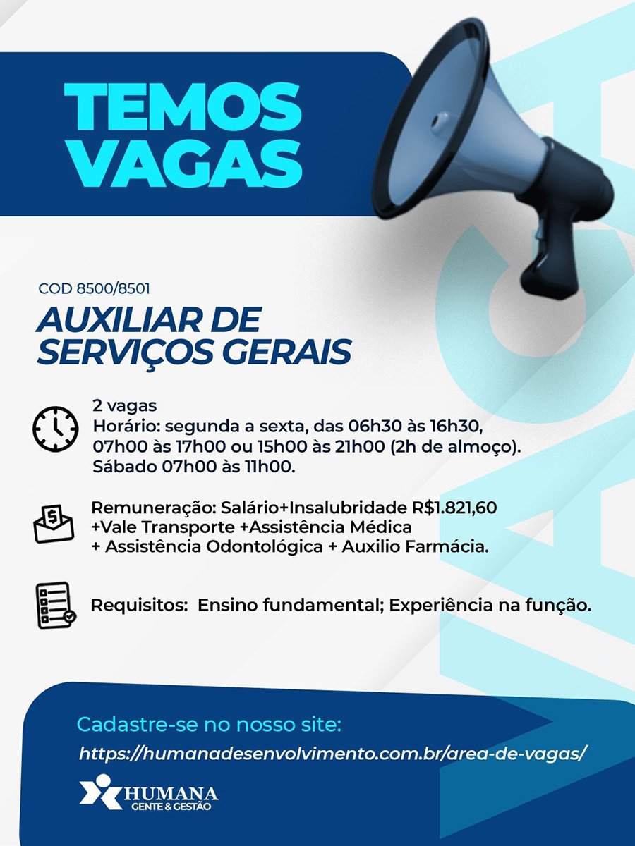 OPORTUNIDADE Confira as vagas de emprego ofertadas pela Humana Desenvolvimento para esta quinta-feira, 13 de novembro