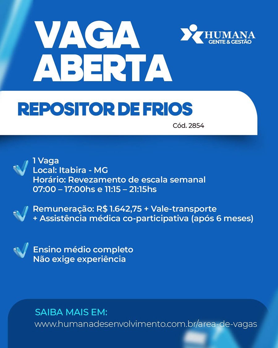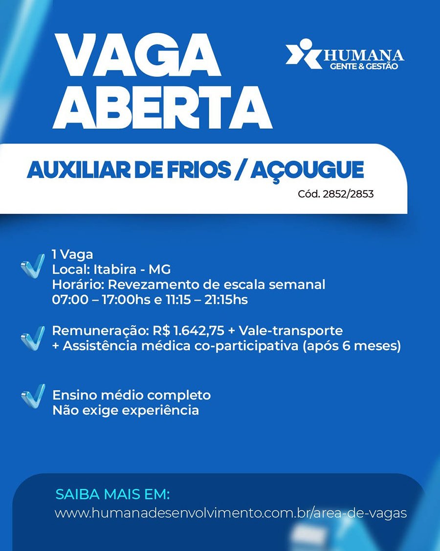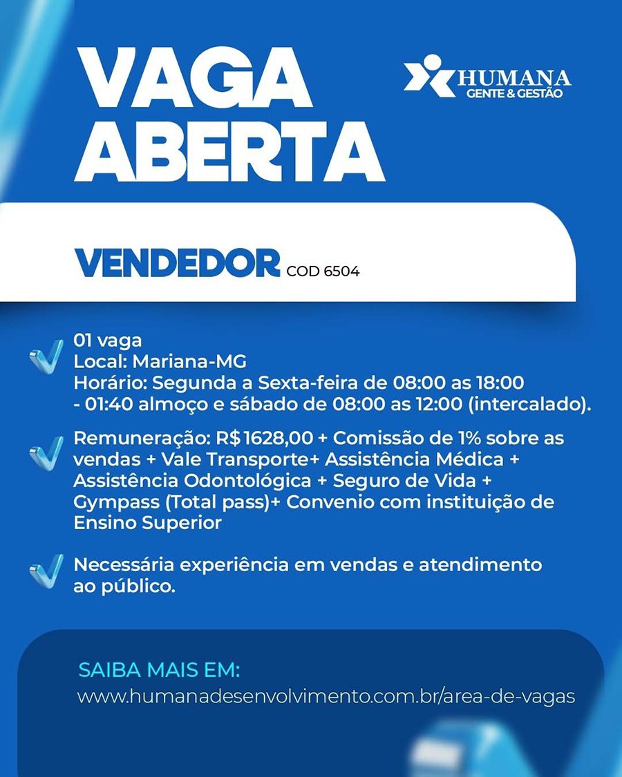 OPORTUNIDADE Confira as vagas de emprego ofertadas pela Humana Desenvolvimento para esta segunda-feira, 28 de julho
