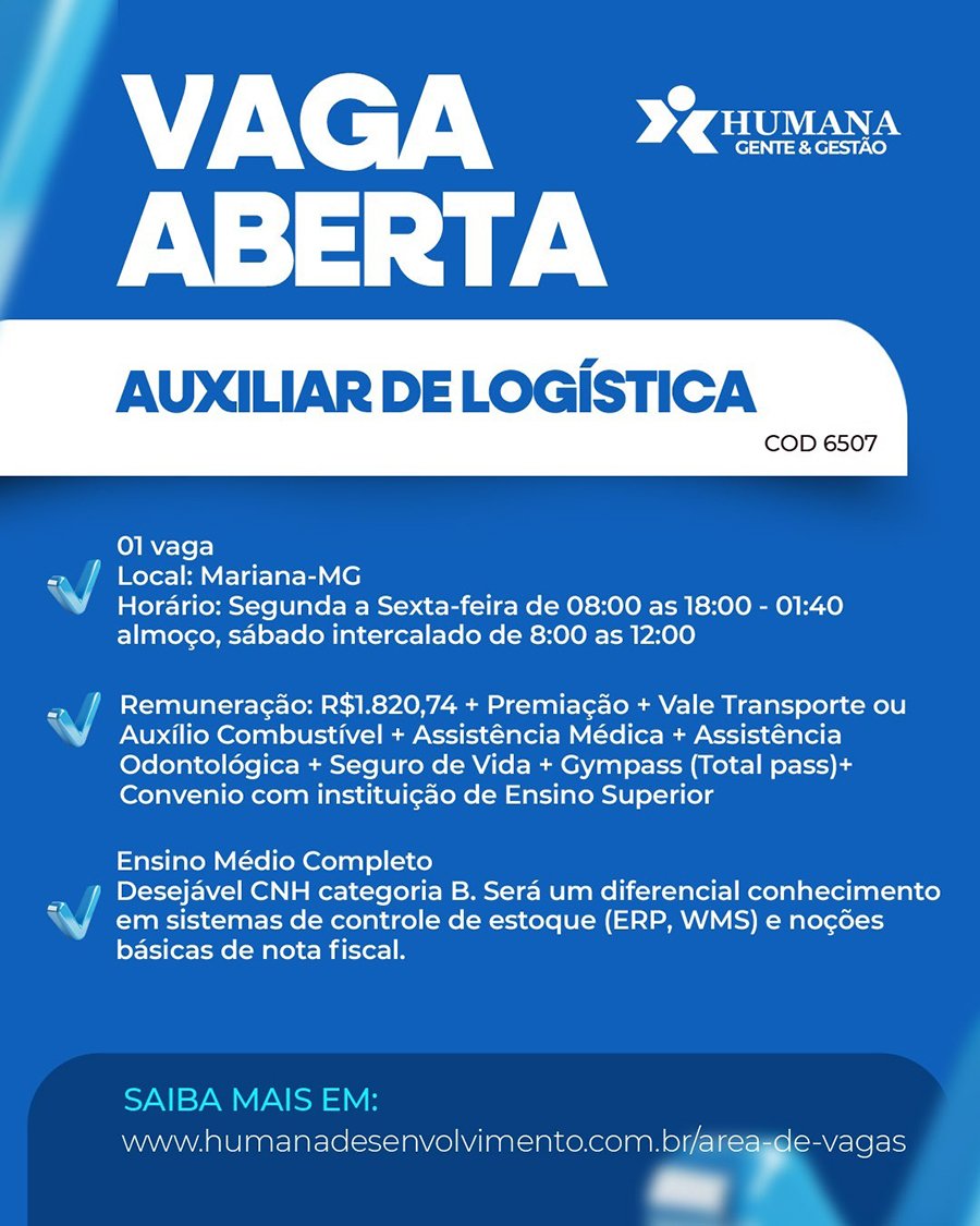 OPORTUNIDADE Confira as vagas de emprego ofertadas pela Humana Desenvolvimento para esta sexta-feira, 15 de agosto