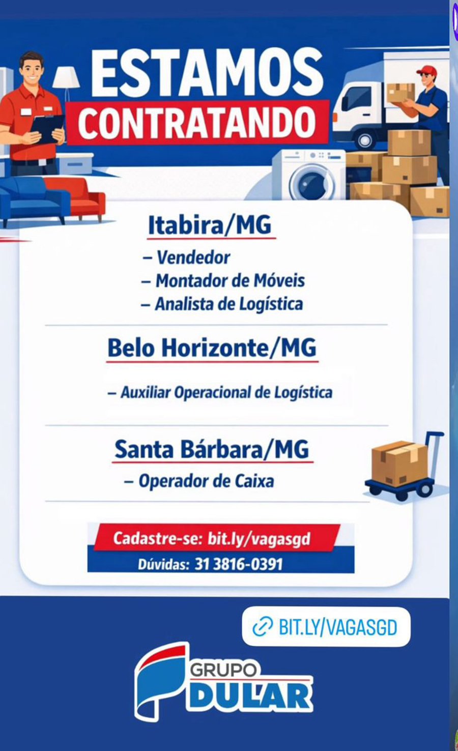 O Portal Fatos de Minas não faz o agendamento de entrevistas, apenas divulga a vaga.