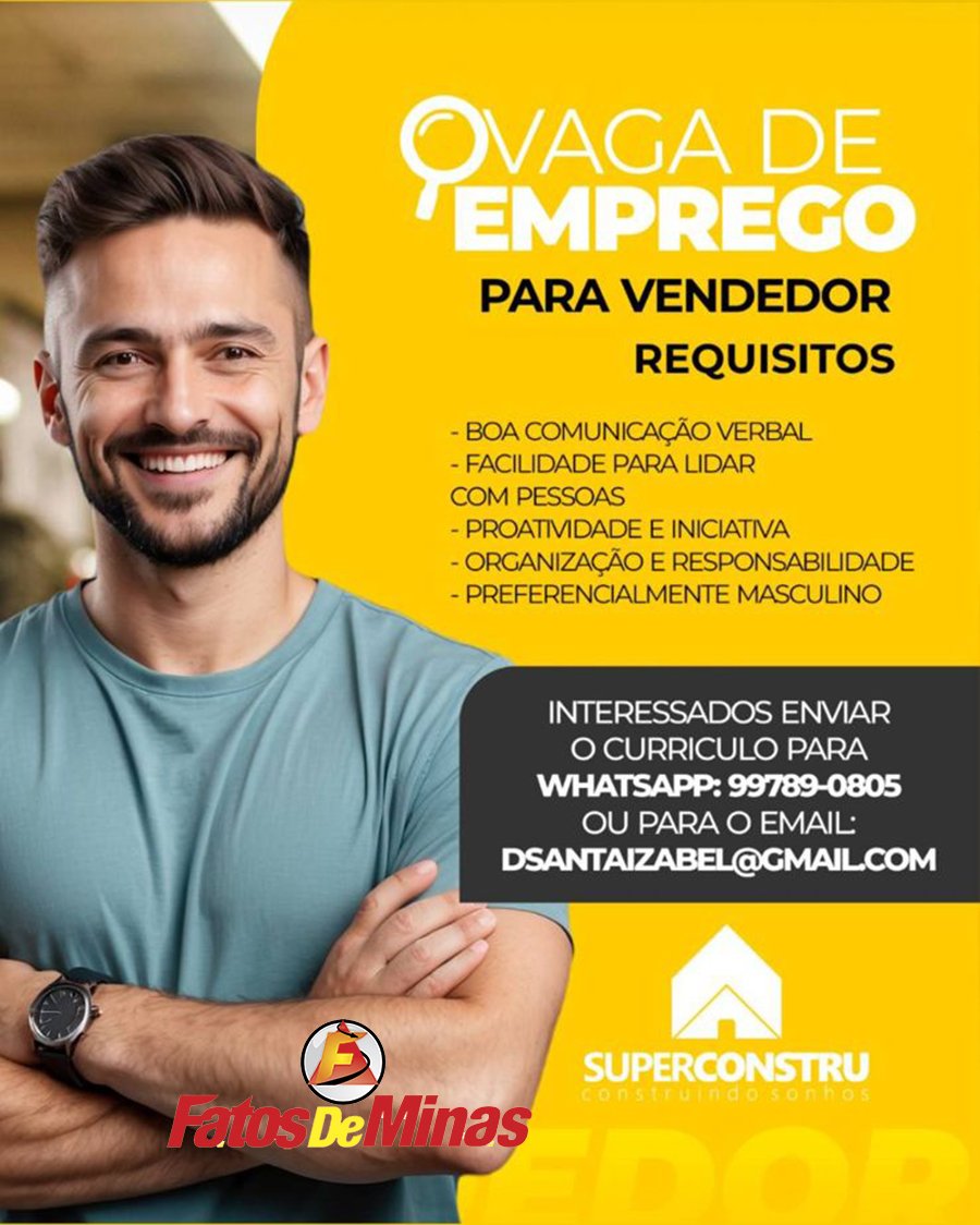 OPORTUNIDADE Super Constru oferece oportunidade de emprego em Itabira nesta sexta-feira, dia 2 de janeiro