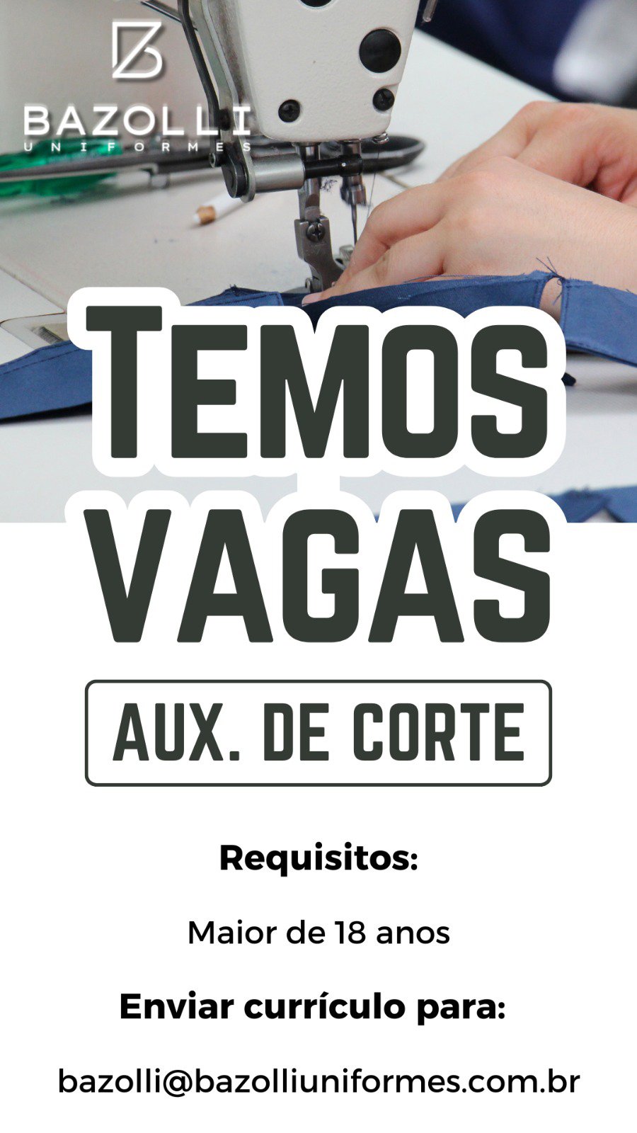 Confira a vaga de emprego e se interessar enviar o currículo para o email bazolli@ bazolliuniformes.com.br